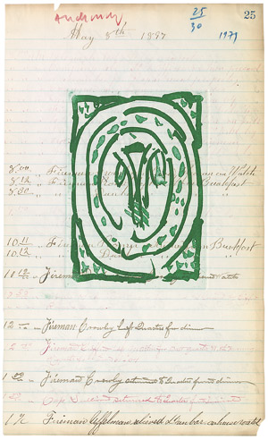 3 Farbätzungen auf liniertem, beschriftetem Registrier- bzw. Manuskriptpapier.
