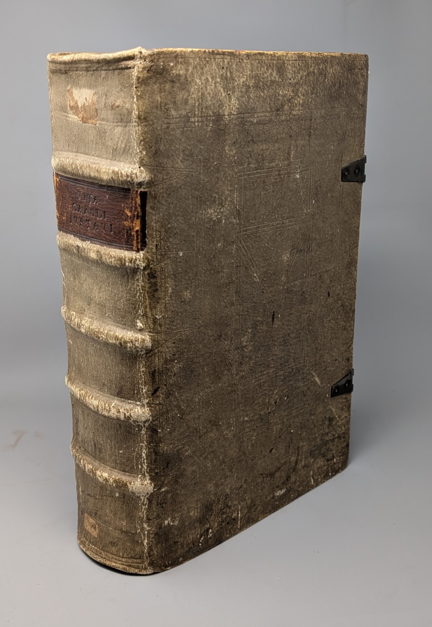 (Pufendorf, Samuel von. De rebus a Carolo Gustavo Sveciae rege gestis commentariorum libri septem). 5 Bl., 626, 53 S., 4 (von 5) Bl. Mit gestochenen Frontispiz, 12 gestochenen Portraits, 23 Textkupfern, 5 gestochenen Initialen, 104 (von 115) Kupfertafeln. 36 x 22,5 cm. Blindgeprägtes Schweinsleder d. Z. (etwas berieben und bestoßen) über abgefasten Holzdeckeln mit 2 intakten ziselierten Messingschließen. Nürnberg, Christoph Riegel, 1696.