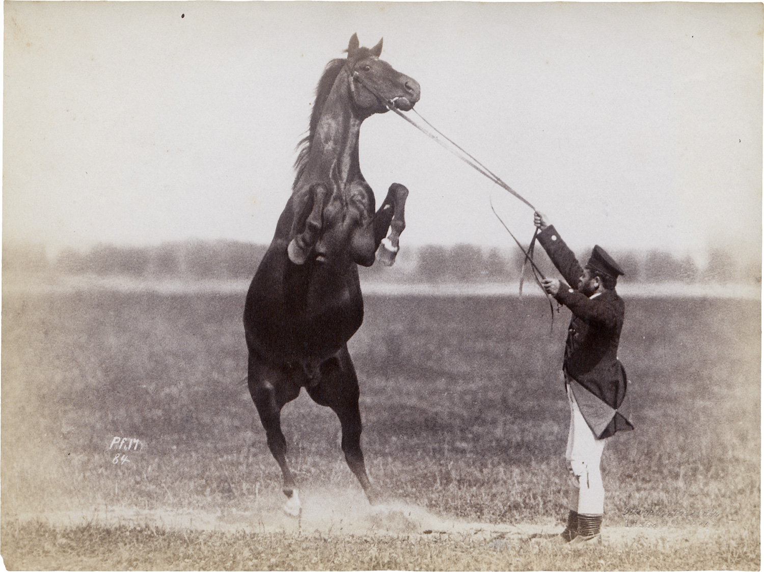 Equestrian training. 1884. 12 albumen prints. Each circa 14,7 x 19,5 cm. Each with photographer's blind stamp in lower right corner and number in the negative in lower left corner; each with photographer's stamp on the verso.