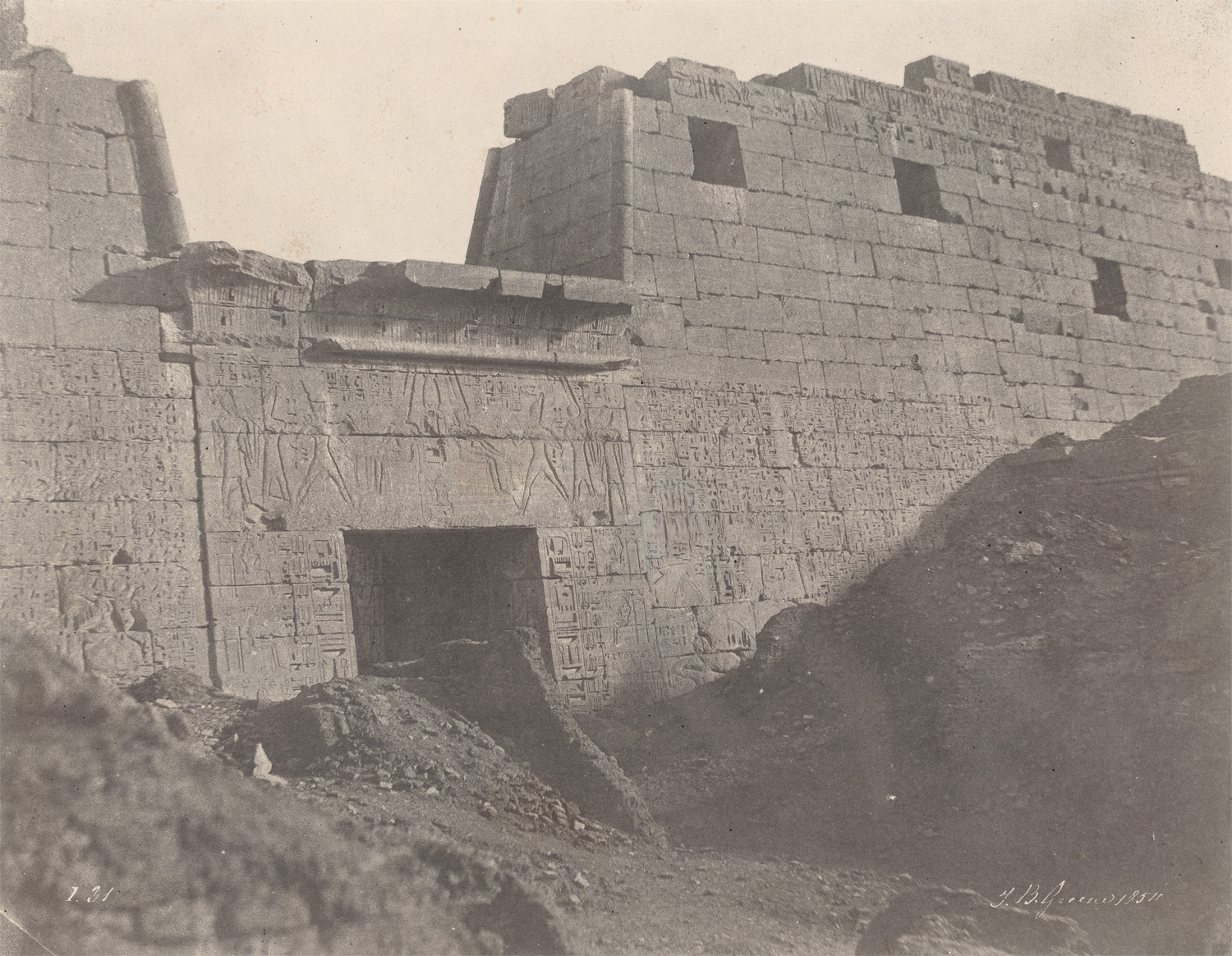 Entrance to the second courtyard, Mortuary Temple of Ramesses III, Medinet Habu. 1854. Salted paper print, mounted to original card. 23,2 x 30 cm (47,4 x 61,7 cm). Signed and dated in the negative in lower right: “J.B. Greene 1854” and in lower left "I 31".