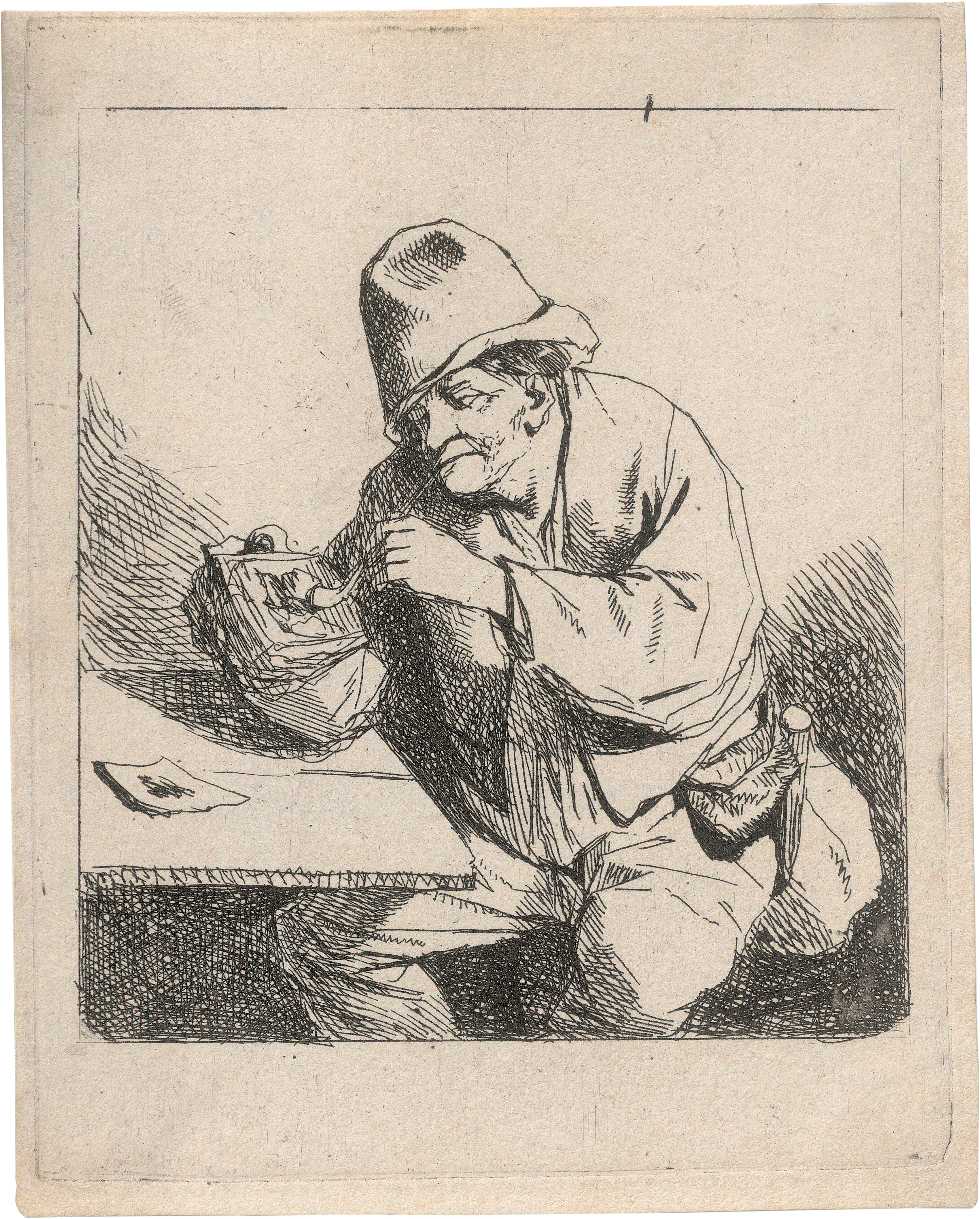 Bauer seine Pfeife anzündend. Radierung. 11,3 x 8,9 cm. B. 20, Hollstein 20 II (von IV).