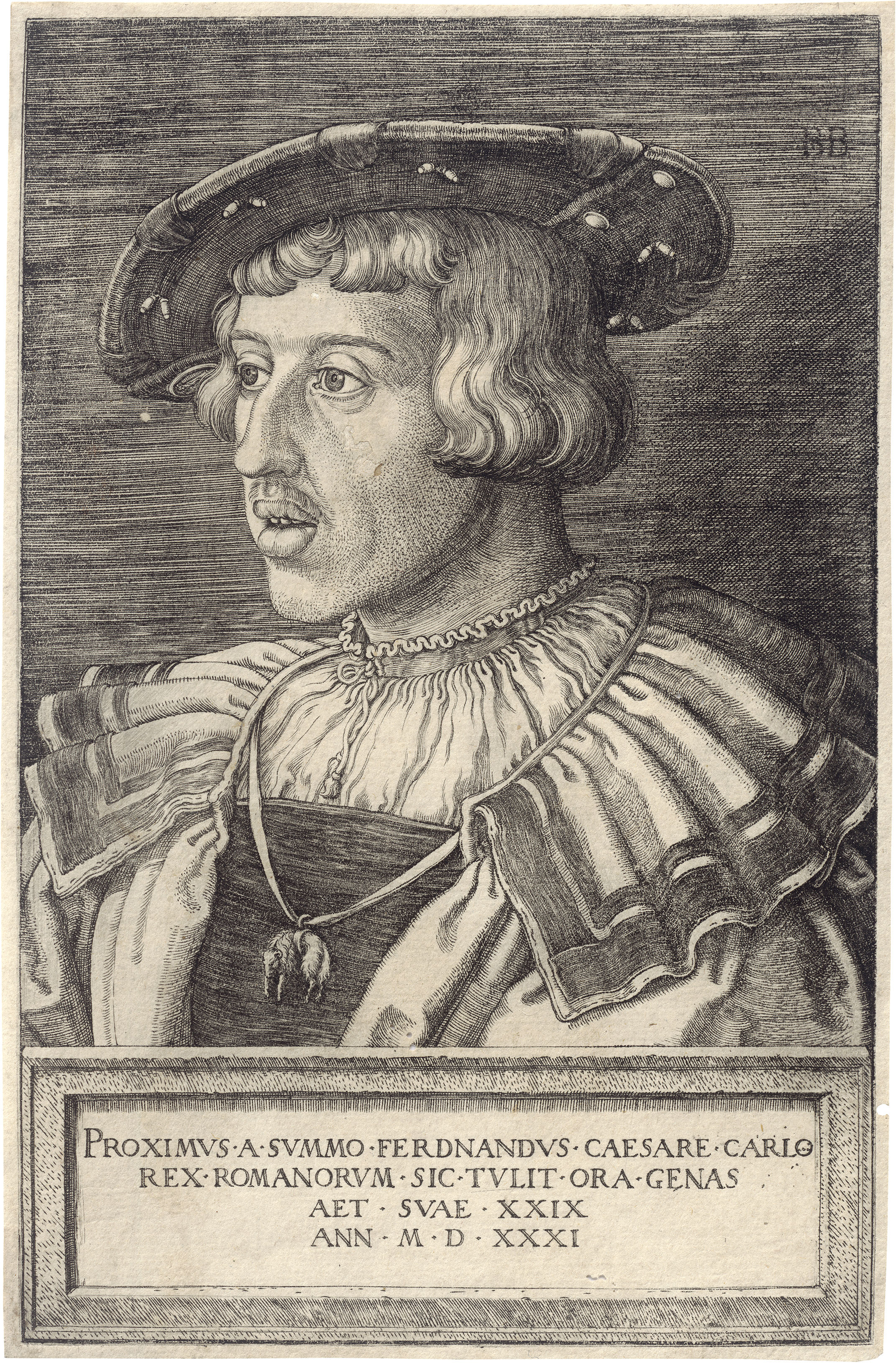 Bildnis Kaiser Ferdinand I. Kupferstich. 20,9 x 13,8 cm. 1531. B. 90, Pauli 91, Hollstein 91 II (von III).