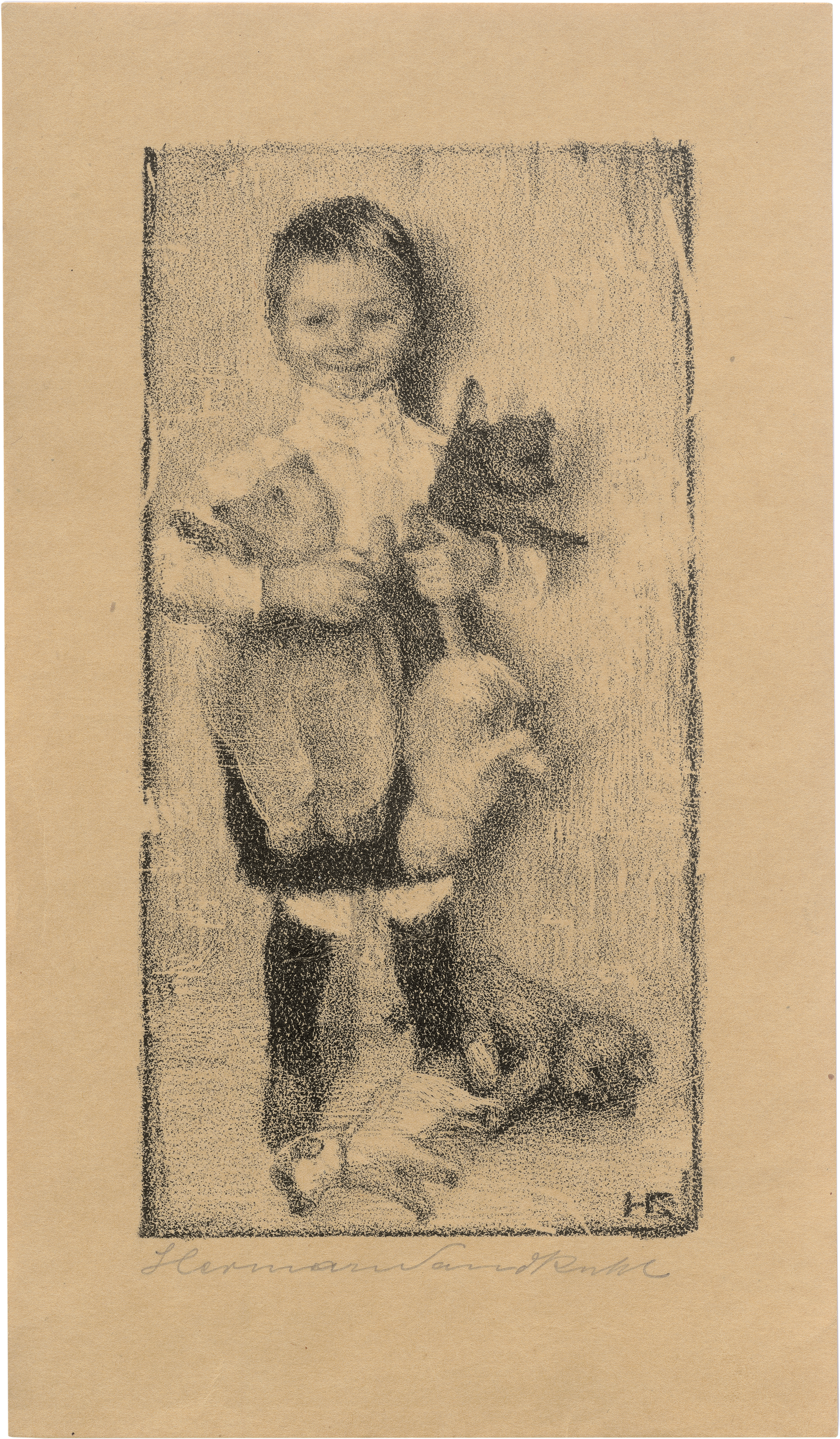 (1872 Bremen - 1936 Berlin)Knabe mit zwei Hunden