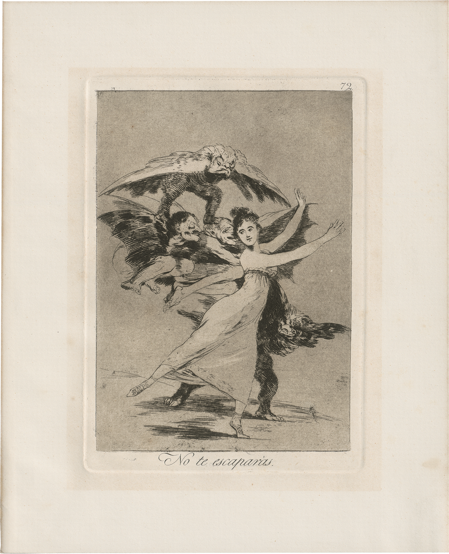 No te escaparas. Radierung mit Aquatinta auf Velin. 21,5 x 15 cm (Plattenkante); 30 x 24,4 cm (Blattgröße). Delteil 109, Harris 107 III, 6. Ausgabe (von 12).