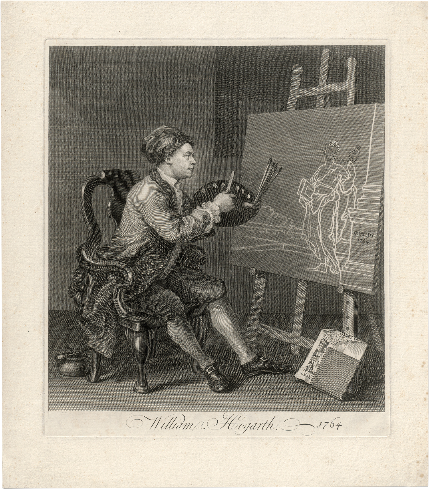 (1697-1764, London)William Hogarth malt Thalia die Muse der Dichtung