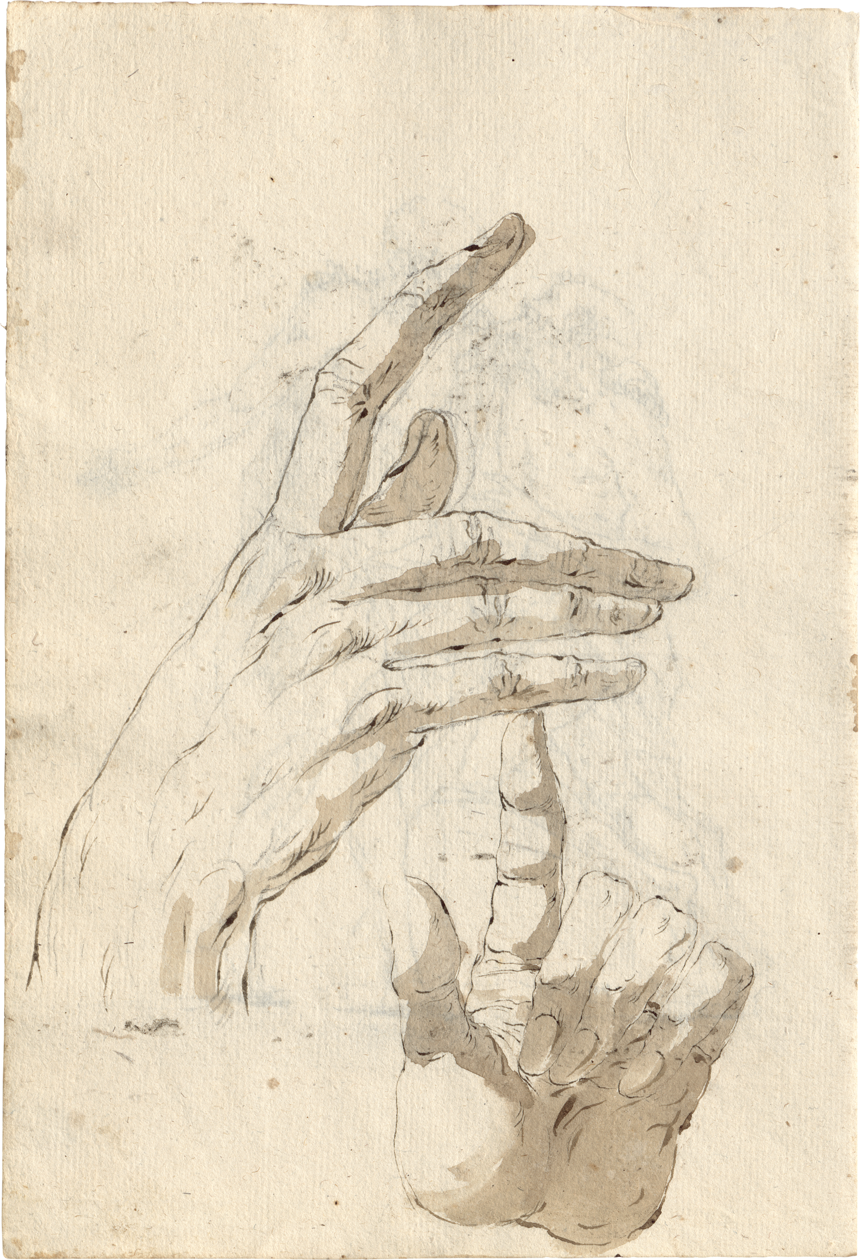Paolo Caliari wurde 1763 in Verona als Sohn von Domenico Caliari, einem Buchhändler und Kupferstecher geboren, durch den er schon früh mit den Techniken des Gravierens vertraut wurde. Er studierte an der örtlichen Kunstakademie bei Prospero Schiavi (1730-1803), einem der Mitbegründer der Akademie und Schüler von Giambettino Cignaroli (1706-1770) und erhielt bereits kurz nach Abschluss seiner Studien im Jahr 1788 das Diplom für eine Professur. Bereits zu Beginn seiner Karriere gewann er zahlreiche akademische Auszeichnungen für sein Werk, war an mehreren Aufträgen zur Dekoration von Palästen und Häusern seiner Stadt beteiligt, schuf vereinzelt Porträts sowie zahlreiche Altargemälde und Andachtsbilder. Daneben widmete er sich dem Experimentieren mit verschiedenen künstlerischen Techniken und dem Studium und Kopieren von Gemälden alter Meister. Die Blätter gehören zu einem Albums, dessen Titel die eigenh. Bezeichnung "Schizzi a Primi colpi di Penna in otto Giorni 1818", woraus auch für diese Zeichnungen die Entstehung im Jahr 1818 folgt (s. Bassenge, Auktion 125 im Mai 2025, Los 6769).