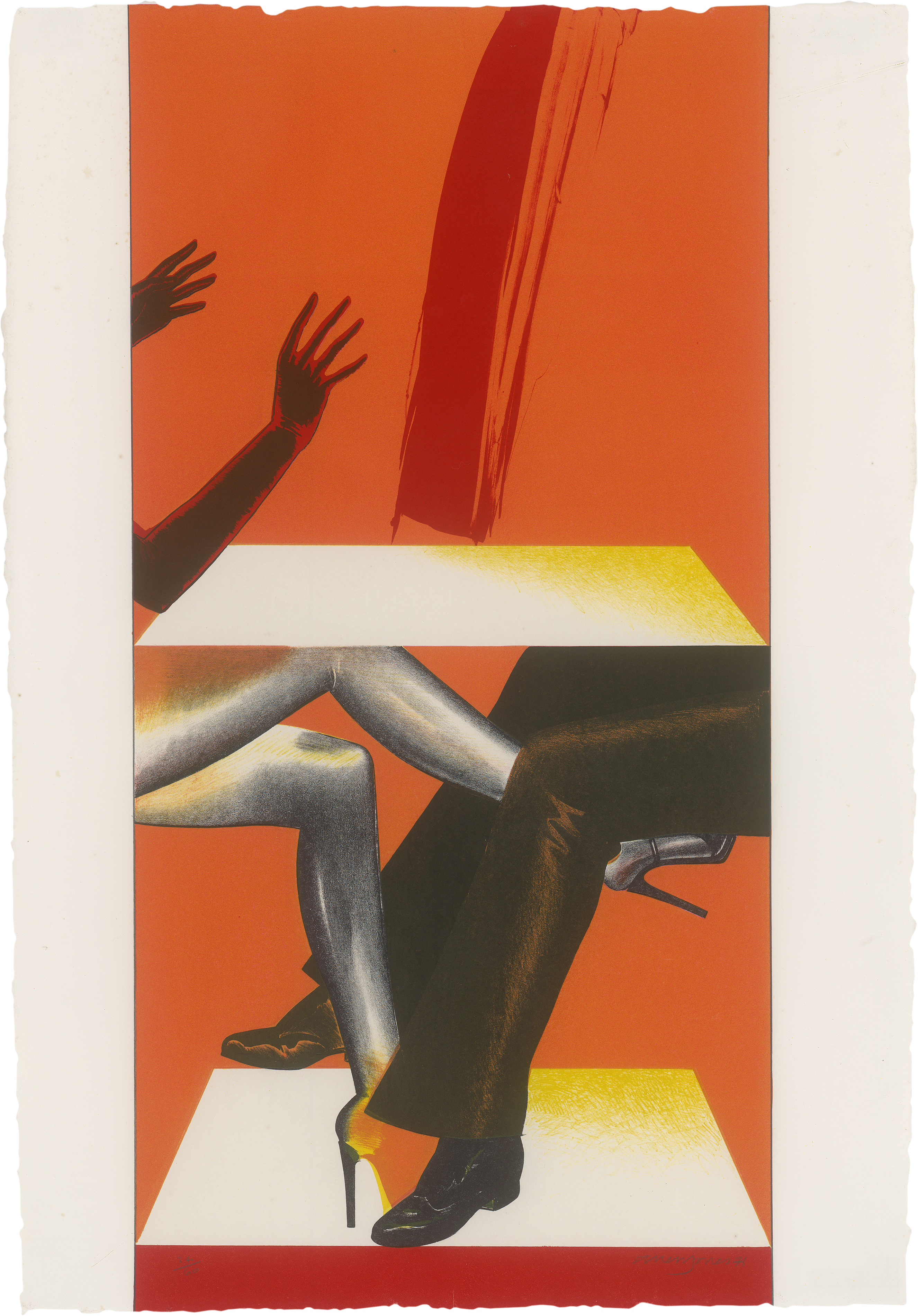 Aus der sechs Farblithographien umfassenden "Magician Suite", erschienen bei Waddington Graphics, London 1976, in einer Gesamtauflage von 71 Exemplaren; Druck Jack Lemon, Landfall Press, Chicago. Prachtvoller Druck mit dem vollen Schöpfrand.