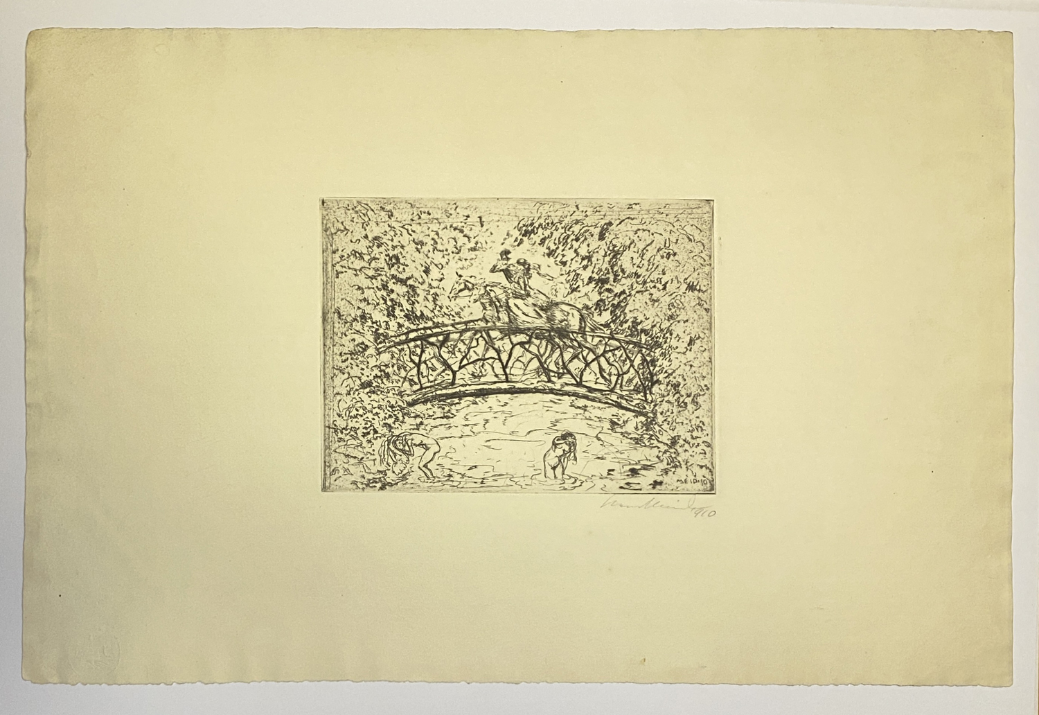Vorhanden sind die Motive "Reiter auf der Waldbrücke", "Venus und Mars" und "Am Radiertisch", jeweils Drucke von der vollendeten Platte. Sämtlich prachtvolle Drucke mit breitem Rand, teils mit dem Schöpfrand.