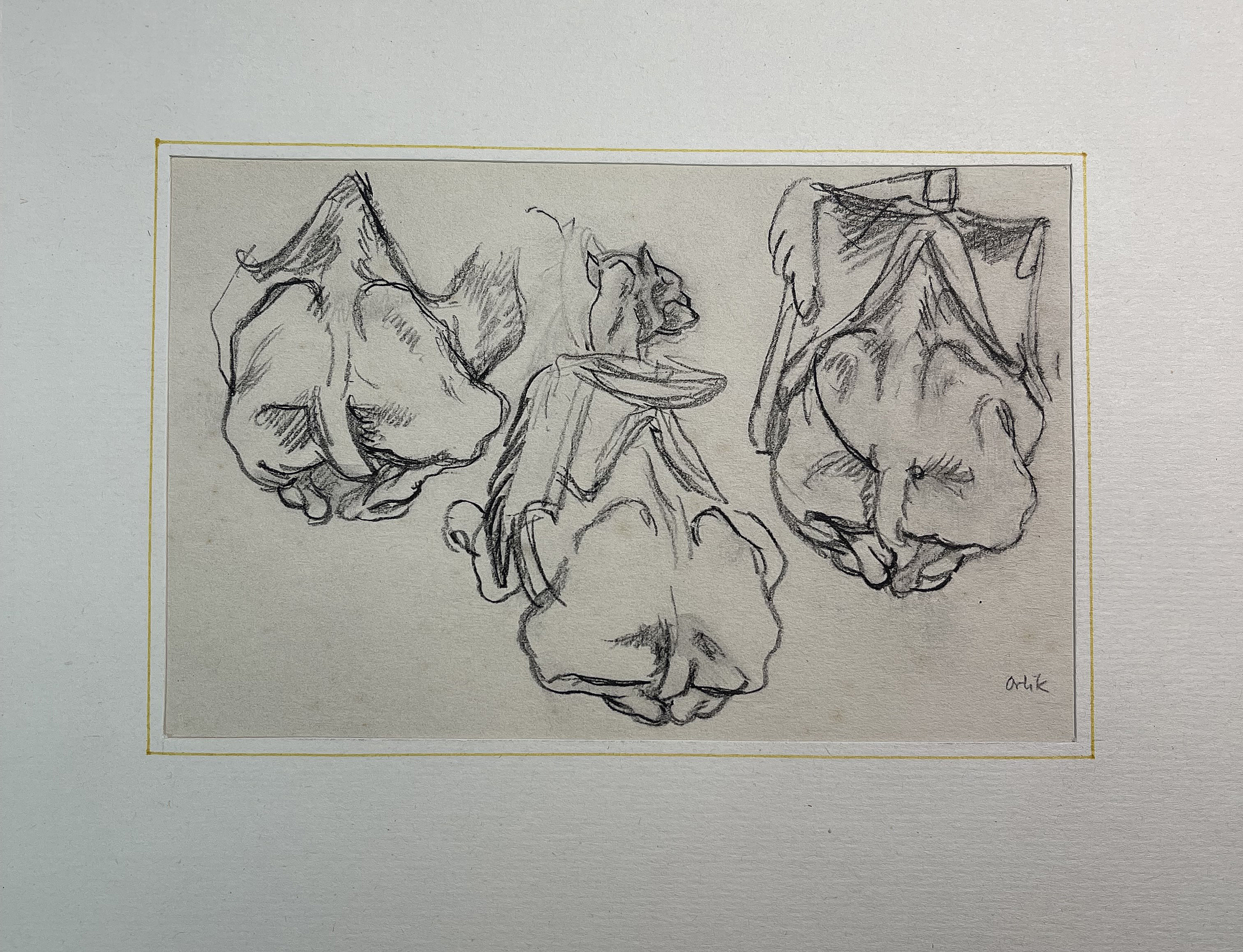 2 Bl. Kreide in Schwarz bzw. Kohlestift auf Velin.