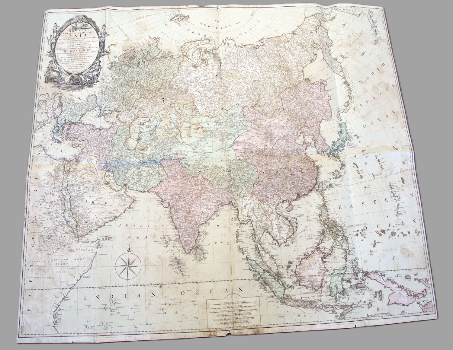 Bowles, Henry Carington. New Four-sheet-Map Atlas of the World displayed: in a New and complete Set of most accurate Maps of the World, Europe, Asia, Africa and America. 1 loser Titel. 5 kolorierte Kupferkarten aus zusammen 16 Segmenten. 53 x 62,5 cm bis 104,5 x 118,5 cm (Blatt). London, Carington Bowles, 1802.