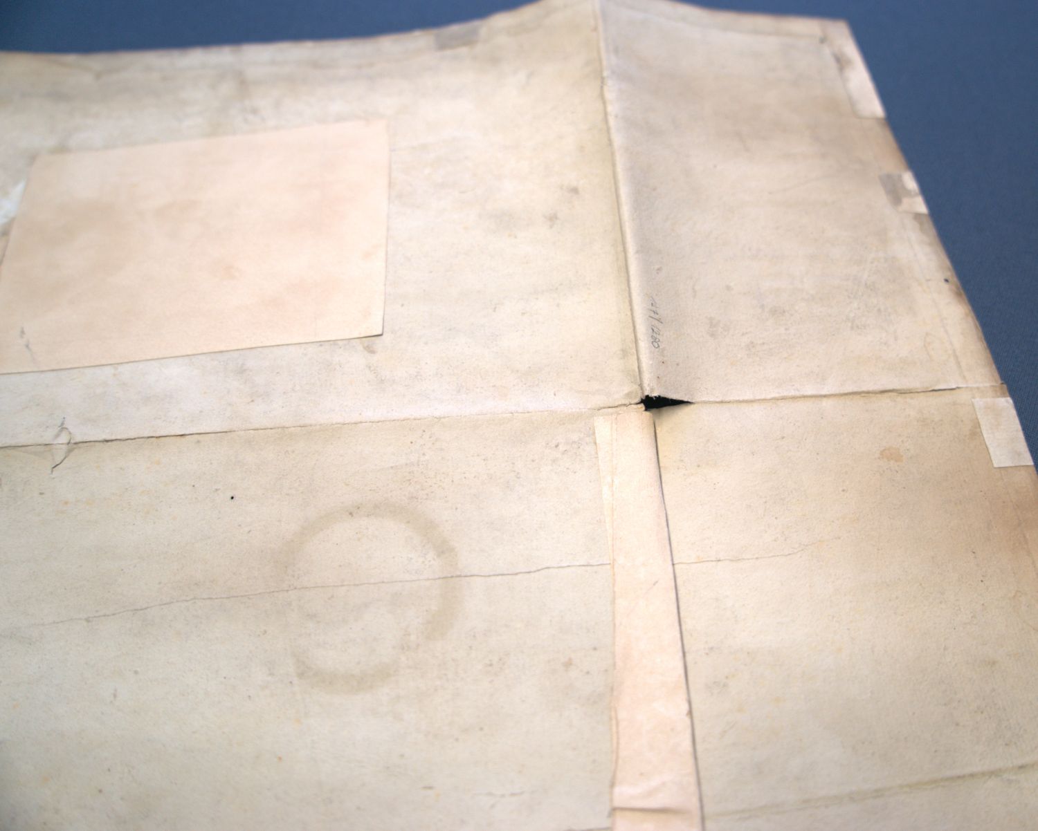 Der französische Stecher Joseph Hunin (1770-1851) fertigte mehrere Radierungen an mit Assignat-Scheinen als Motiv. Das Werk kritisiert die französische Politik während der Französischen Revolution. In dieser Zeit wurden Assignat-Scheine wie Geld gehandelt und wurden zum teils einzigen Zahlungsmittel. Diese verfielen jedoch rasch der Inflation und führten zu einer starken Verarmung von Arbeitern, die vorwiegend mit Assignat-Scheinen bezahlt wurden. – Stärker berieben, mit mehreren Falzen, mit größeren Einrissen und teils hinterlegten Fehlstellen sowie mit Montagelöchleins. Seltener Druck.