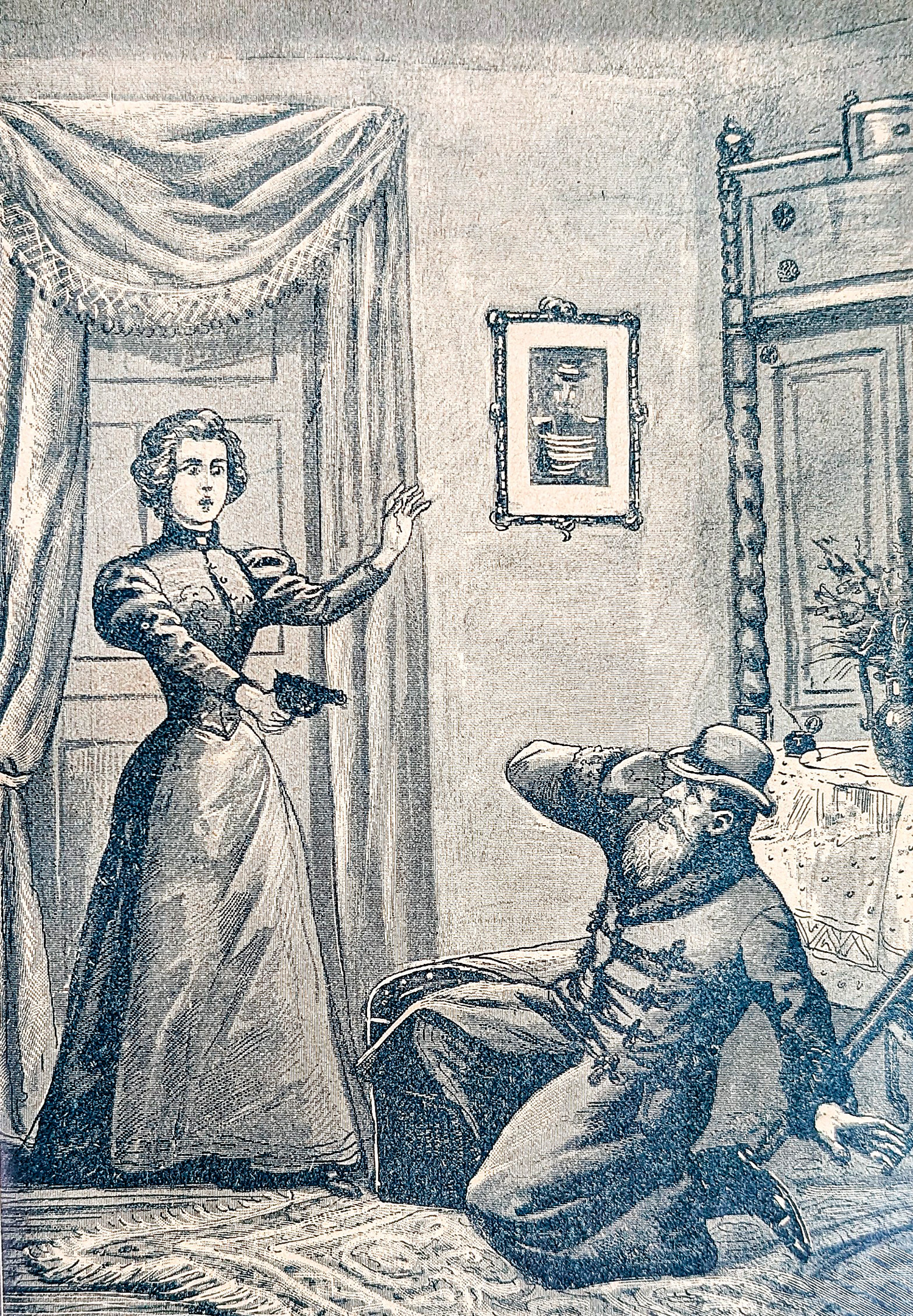 Kolportage. - Falk, Victor von (d. i. Heinrich Sochaczewsky). Auf ewig getrennt? oder Kapitän Dreyfuss und seiner Gattin ergreifende Erlebnisse, Schicksale und fürchterliche Verbannung. Sensations-Roman. 2400 S. in 2 Bänden. Mit zahlreichen Illustrationen auf Tafeln. 21,5 x 14,5 cm. Halbleinen d. Z. (Gebrauchsspuren, illustrierter OLieferumschlag eingebunden). Berlin, A. Weichert, (1898).