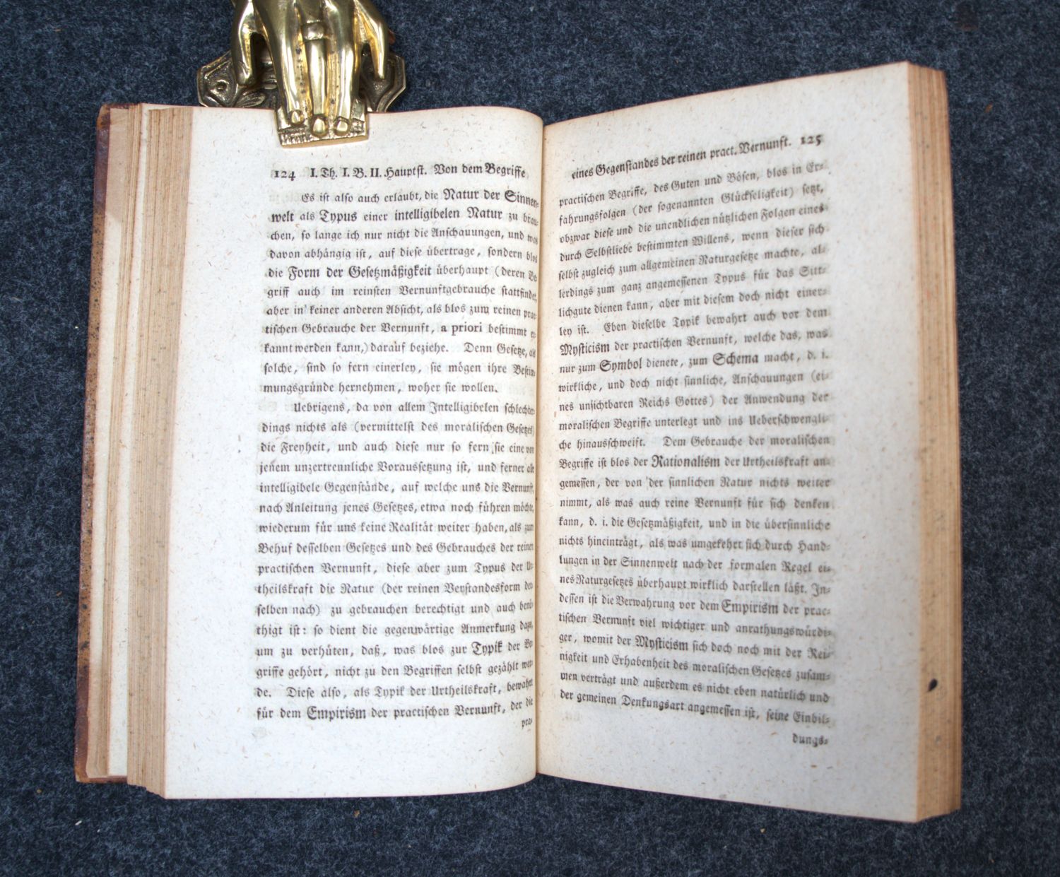 Warda 112. Adickes 67. – Erste Ausgabe von Kants zweiter Kritik, die seine Theorie der Moralbegründung enthält. Bis heute eines der wichtigsten Werke der Praktischen Philosophie überhaupt. Mit dem kategorischen Imperativ: "Handle so, daß die Maxime deines Willens jederzeit zugleich als Prinzip einer allgemeinen Gesetzgebung gelten könne." – Etwas stärker leimschattig, sonst schön und wohlerhalten. Innenspiegel mit altem Besitzeintrag.