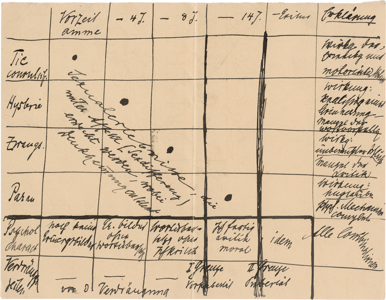 (1856-1939)Eigenhändiges Diagramm über "Sexualerlebnisse unter Affekt". 1926