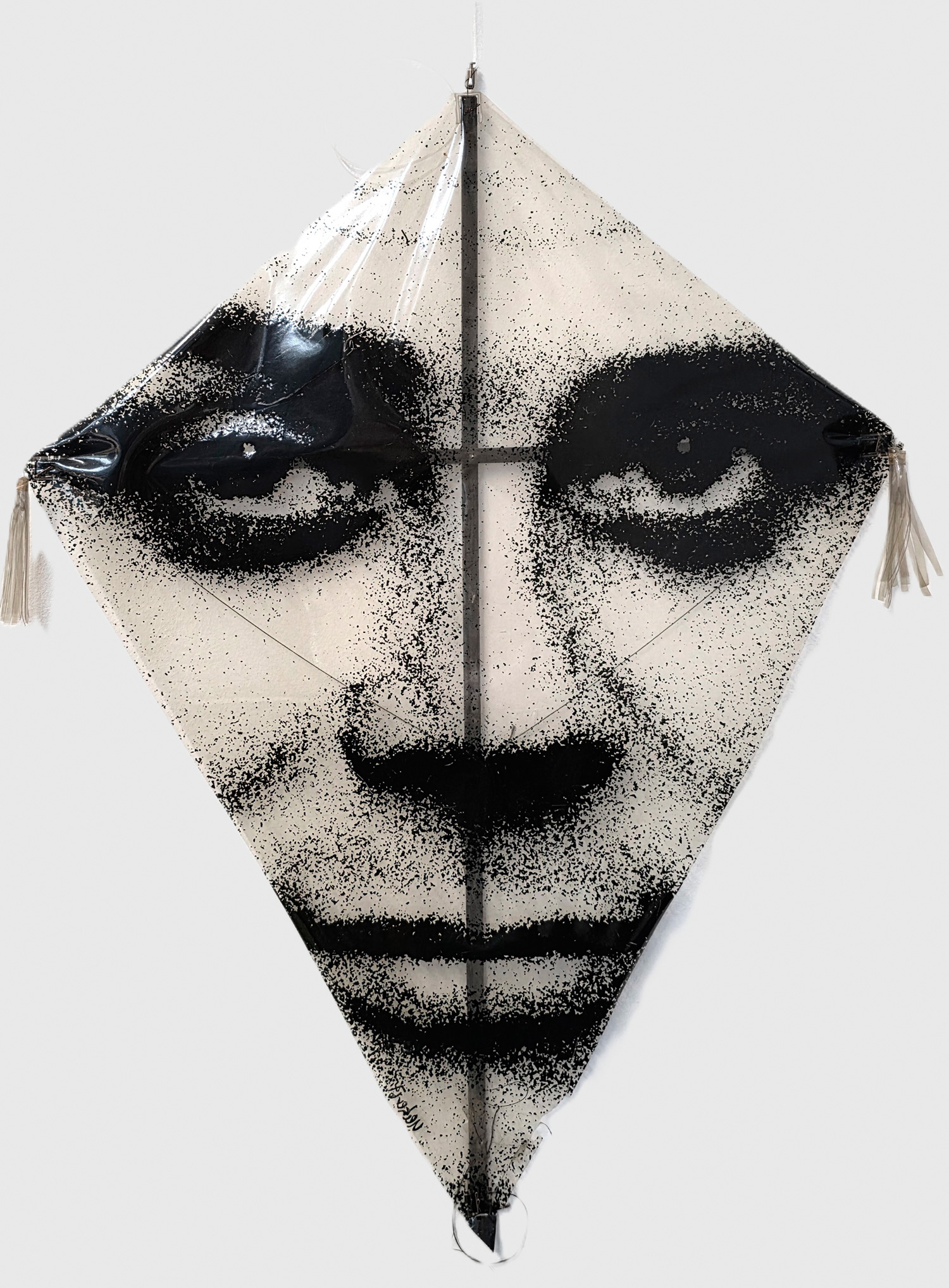 Uecker, Günther. Drachen (Selbstbildnis). 1967. Serigrafie auf transparenter PVC-Folie, auf Holzstreben gespannt. 119 x 83,5 cm. Verso signiert und datiert "Uecker 67". Düsseldorf-Oberkassel 1967.
