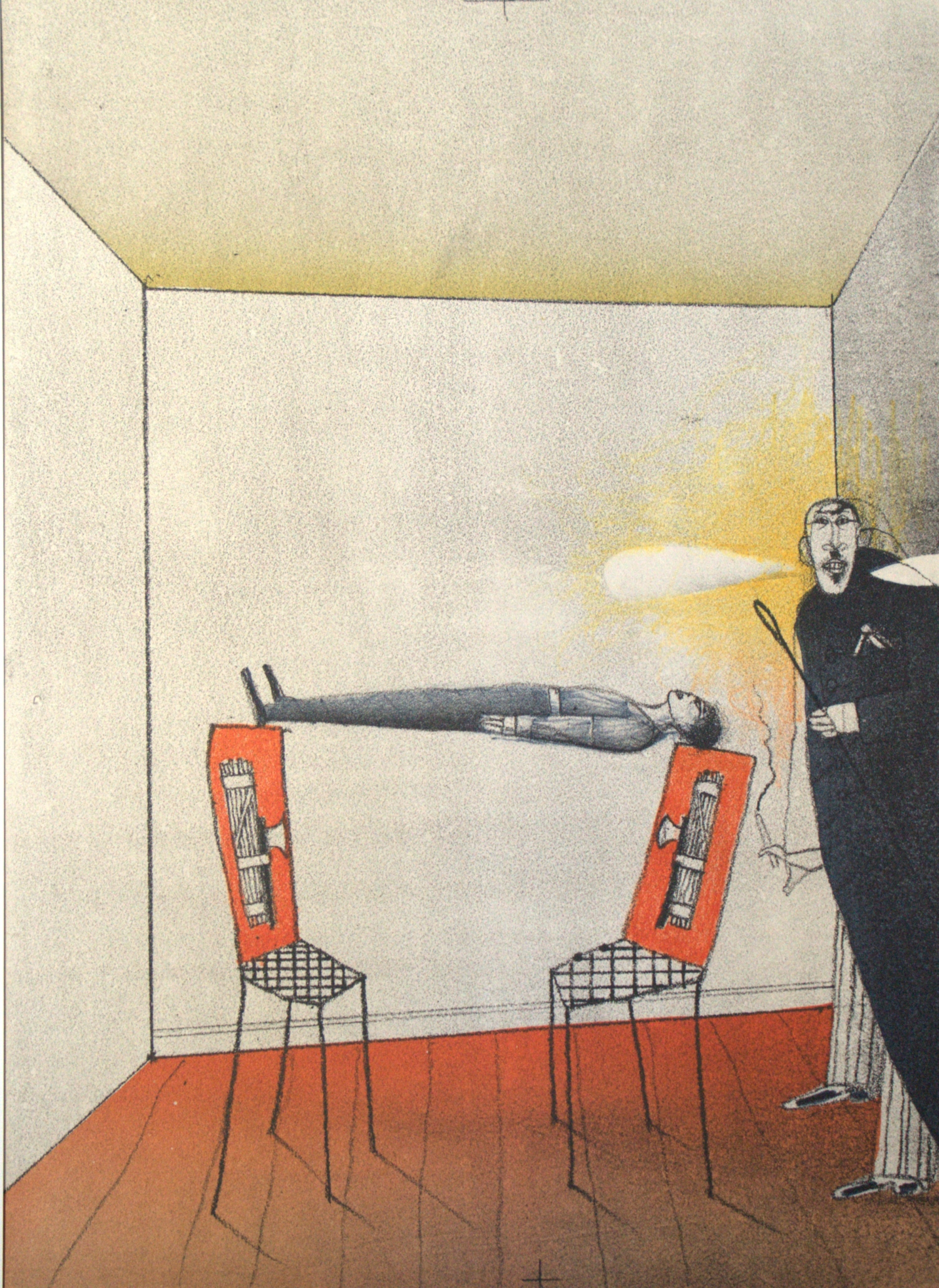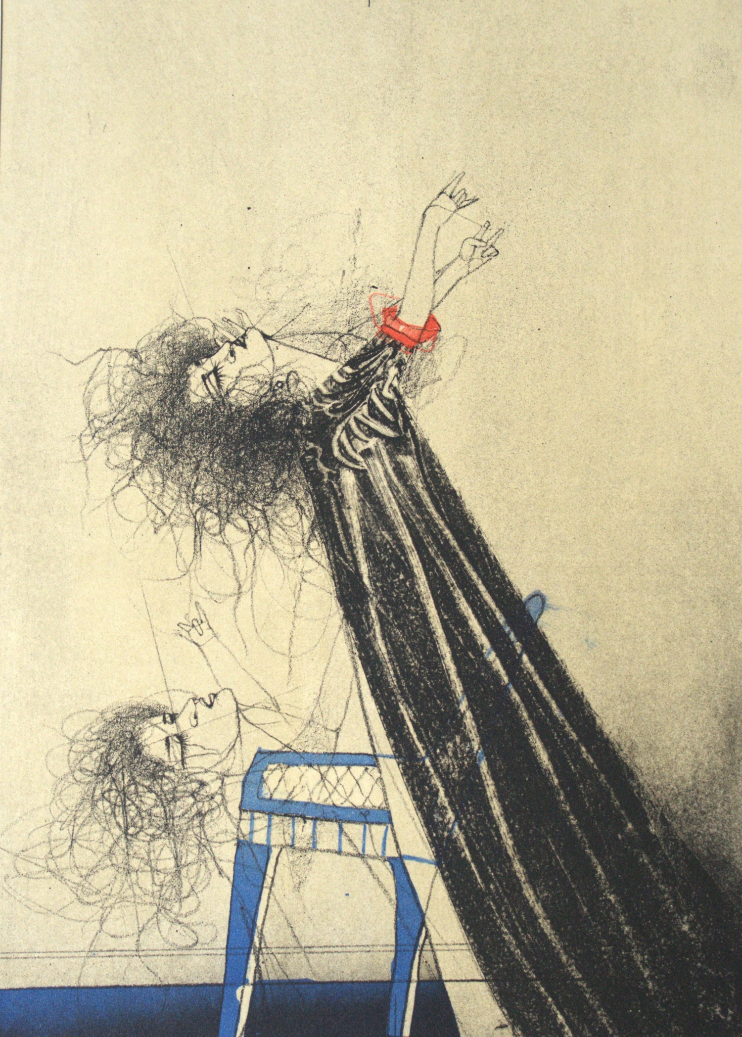 Wunderlich, Paul. - Mann, Thomas. Mario und der Zauberer. Titel mit Originalzeichnung und 17 betitelte Original-Farblithographien, jeweils unter Passepartout, von Paul Wunderlich. 51 x 40 cm. OPappband mit OUmschlag und mont. Orig.-Farblithographie auf dem Vorderdeckel. O. O. (2003).