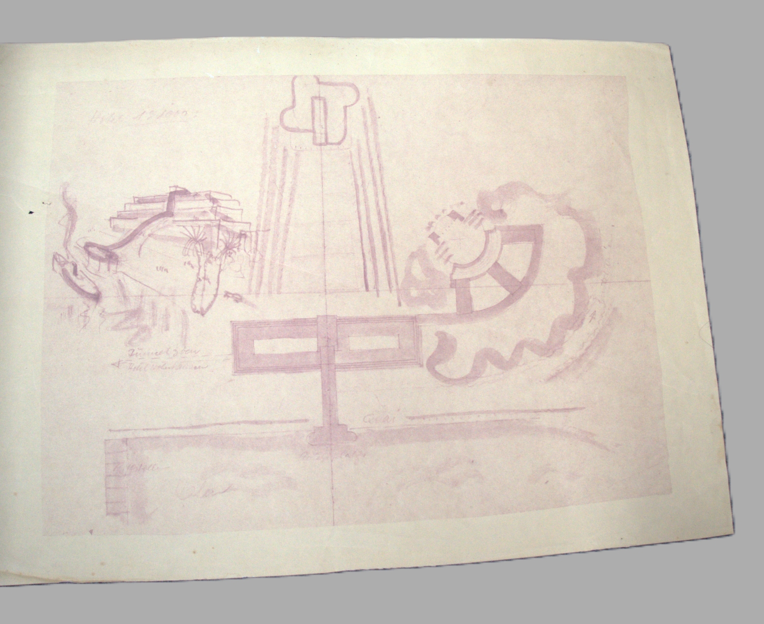 Atlantropa-Ausstellung Wien 1932. Konvolut mit ca. 27 Blättern, darunter Entwürfe, Ansichten, Schautafeln, Diagramme. Teils Montagen, Gouachen, Tuschezeichnungen, verschiedene Größen, meist Imp.-Folio. Ca. 1928-1932.