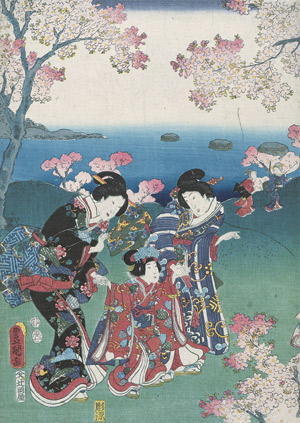 4 Ukiyo-e Farbholzschnitte verschiedener Künstler. Wohl Edo (Tokio) 1830-1880
