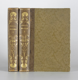 Brentano, Clemens. Die Märchen. Zum Besten der Armen nach dem letzten Willen des Verfassers herausgegeben von Guido Görres. 2 Bände. LVIII S., 1 Bl., 495 S.; 2 Bl., 608 S. 20 x 13 cm. HLeder d. Z. (etwas berieben und bestoßen) mit Romantiker-RVergoldung und goldgeprägtem RTitel. Stuttgart und Tübingen, Johann Georg Cotta, 1846-1847.