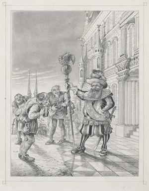 Besonders fein gezeichnete Illustrationen zu Brentanos bekanntestem der "Italienischen Märchen", das im November 1837 unter dem Titel Das Märchen von Gockel und Hinkel erschienen war. Die Körpergestaltung, die Perspektive der Darstellung und der immense Detailreichtum sprechen dafür, das hier ein Meister seines Fachs am Werk war. Jedes Bild mit "H. v. S." signiert und in Bleistift unten rechts datierte: "14.4." bis "2.5.83". – Gering gebräunt, kaum angestaubt, wohlerhalten.
