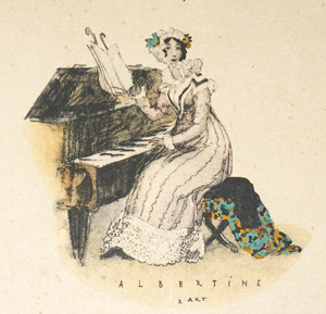 Walser, Karl. - Busoni, F. Die Brautwahl. Musikalisch-phantastische Komödie in drei Akten und einem Nachspiel nach E. T. A. Hoffmanns Erzählung. Zweite, endgültige, mit der Komposition übereinstimmende Fassung. 55 S. Mit 16 (8 kolorierten) Tafeln und mehreren kolorierten Vignetten von Karl Walser. 28,5 x 36,5 cm. Farbig illustr. OPappband (etwas gebräunt, berieben und leicht bestoßen) mit KGoldschnitt. Berlin, Bruno Cassirer, 1913.
