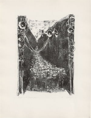 Das komplette Mappenwerk, in kleiner Auflage erschienen im Verlag der Kunst, Dresden 1976. "Heisig verehrte Max Beckmanns Bildkonstruktionen und nahm in der Malweise viel von Lovis Corinth auf. (...) Ihn beschäftigten im Lauf der Jahre u.a. die Pariser Kommune von 1871, die Schlacht um Breslau 1945, ein Kriegskrüppel, der sich immer noch unbelehrbar an seinen Orden erfreut, der Flugtraum und Absturz des Ikarus, die Verführbarkeit durch Massenmedien und die Person und ideologische Nachwirkung des Preußenkönigs Friedrich der Große. Gleichsam im ideellen Zentrum dieser aufgewühlten Bilderwelt steht die Lithografienfolge 'Der faschistische Alptraum", die 1965-1975 in Varianten entstand." (Peter H. Feist, Ein Alarmrufer, in: Neues Deutschland, 11.06.2011). Prachtvolle, klare Drucke mit dem vollen Rand. Die vollständige Mappe ist äußerst selten.