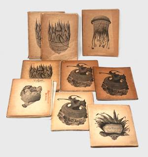 Raabe, Handbuch 17. Lubasch-Mayer S. 8. – Erste Ausgaben. Die berühmte Sammlung mit Stücken des Phantasten, jeder Band mit einer Fülle bizarrer Zeichnungen des Autors. "Revolutionär" bedeutet hier, "aus dem Vorstellungskreisen des Irdischen immer weiter herauszukommen" ins Sphärische, eine Aufführungspraxis, die später im Theater des Bauhauses eine Fortführung findet. – Teils etwas gebräunt, unaufgeschnitten und in der Bindung gelockert.
