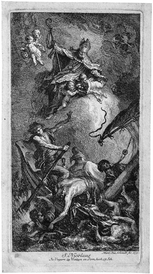 (gen. Kremser-Schmidt, 1718 Grafenwörth - 1801 Stein a.d. Donau)Der hl. Nikolaus rettet Schiffbrüchige