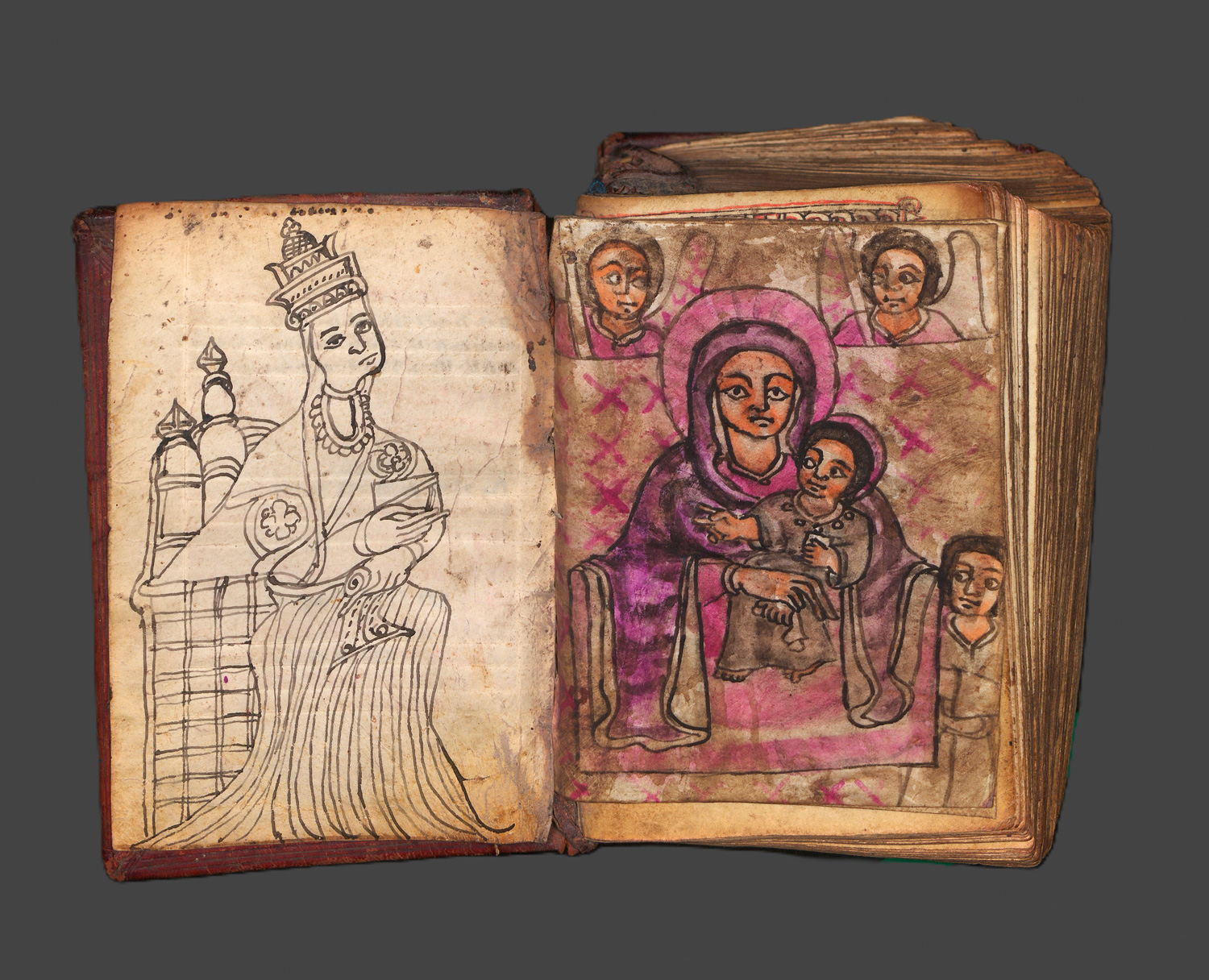 Ge'ez-Handschrift in roter und schwarzer Schrift auf Pergament.