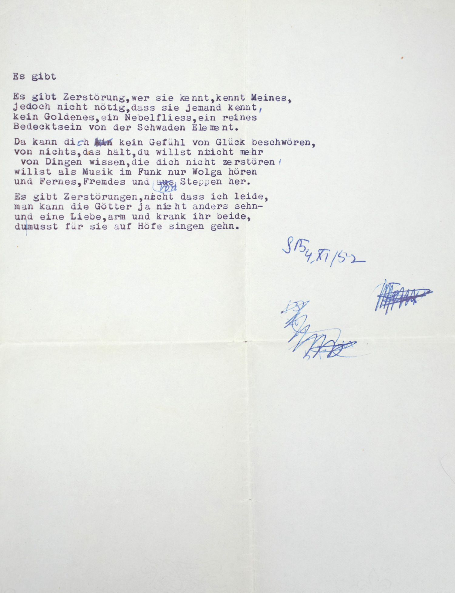 (1886-1956)Gedicht-Typoskript mit eigh. Monogramm. 1952