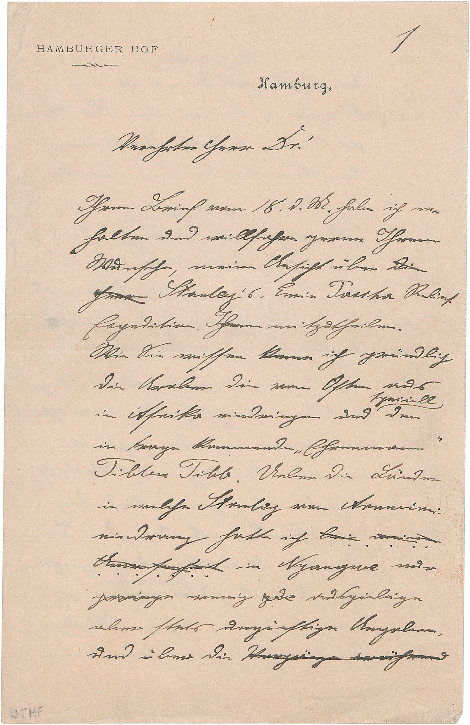 (1853-1905)Sehr umfangreicher Brief über die Emin-Pascha- und Stanley-Expeditionen. 1888