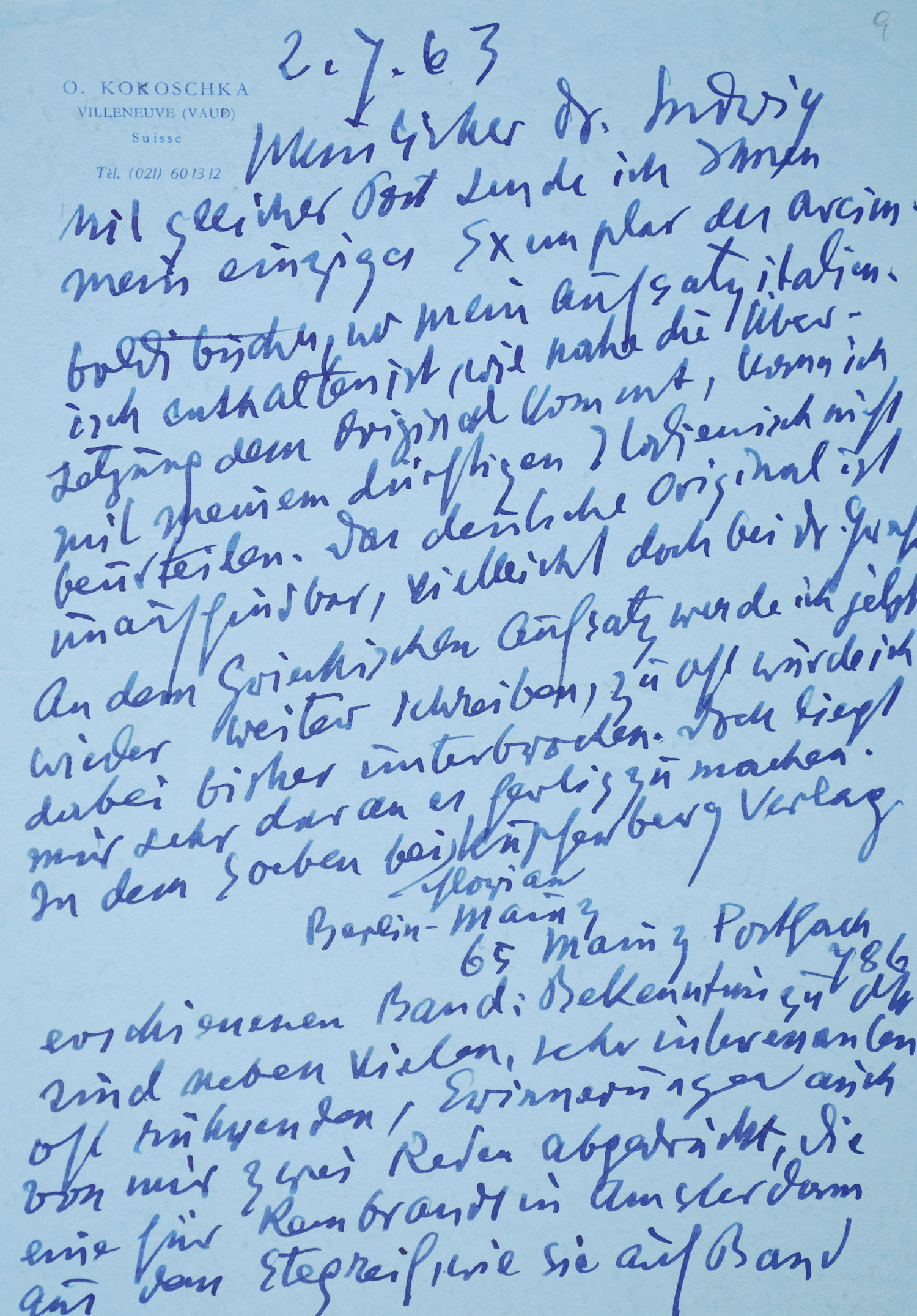 (1886-1980)Brief an Ludwig Goldscheider über seine Bücher. 1963