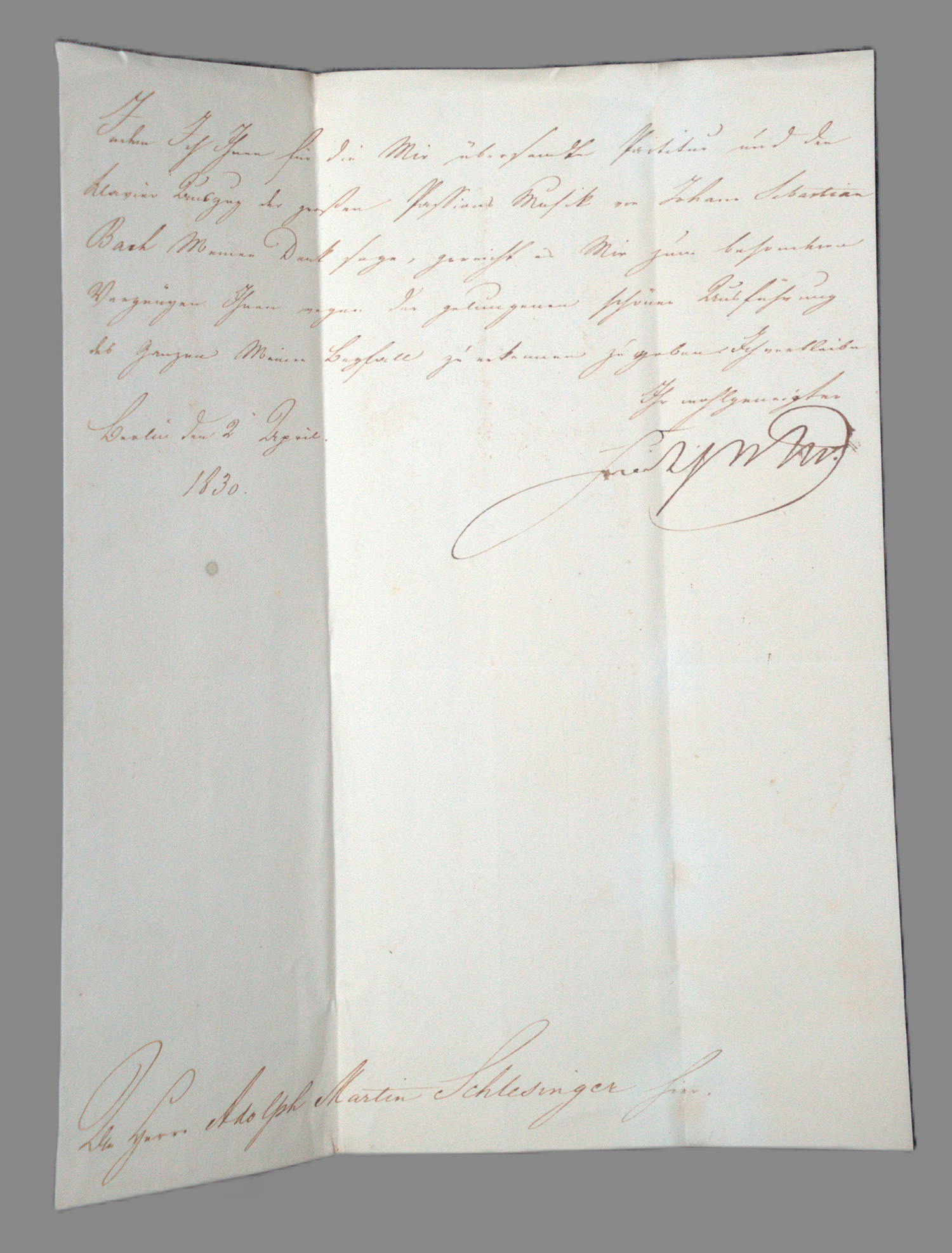 (1795-1861)Brief an den Berliner Musikverleger Schlesinger. 1830