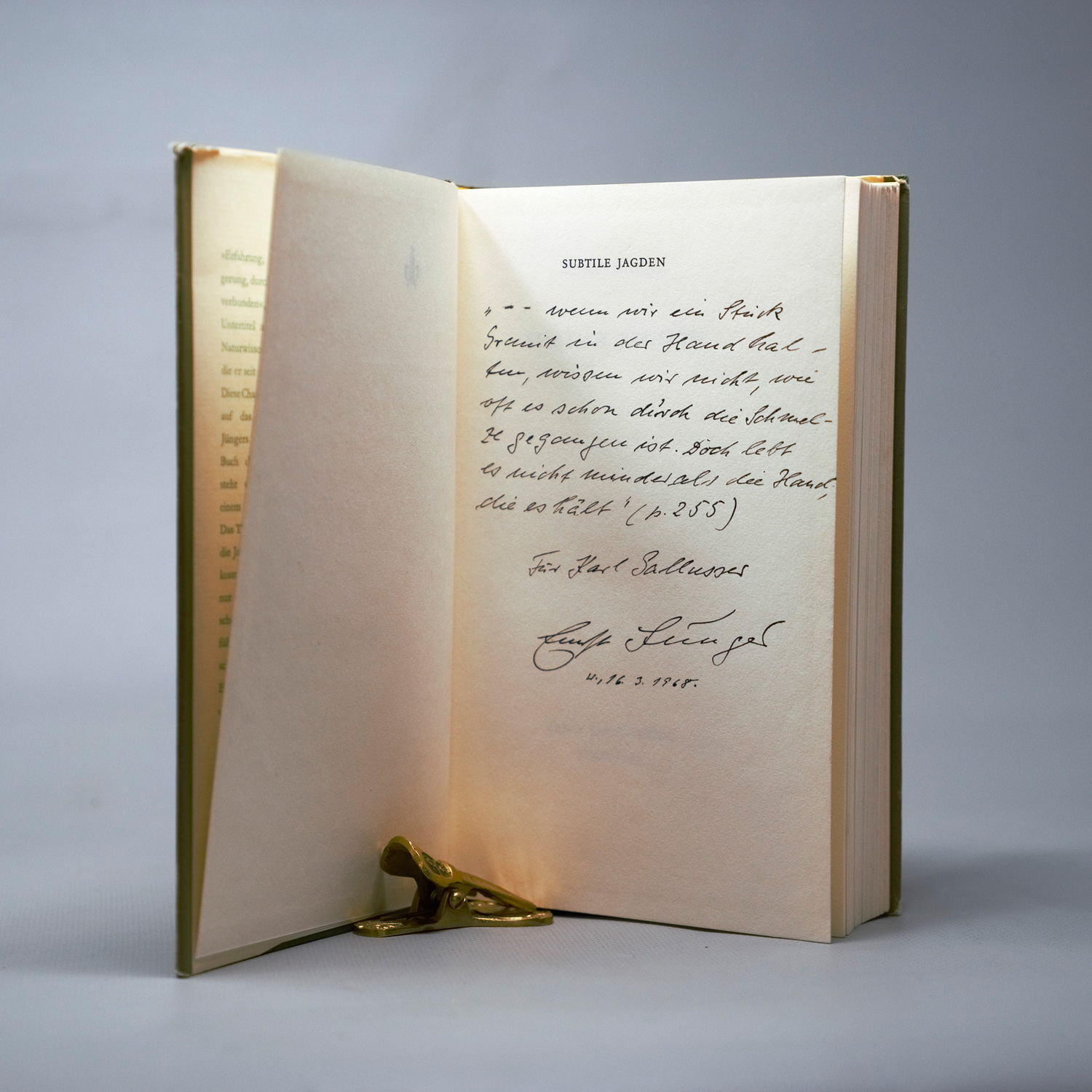 (1895-1998)Subtile Jagden. Stuttgart 1967. - Erste Ausgabe. - Widmungsexemplar