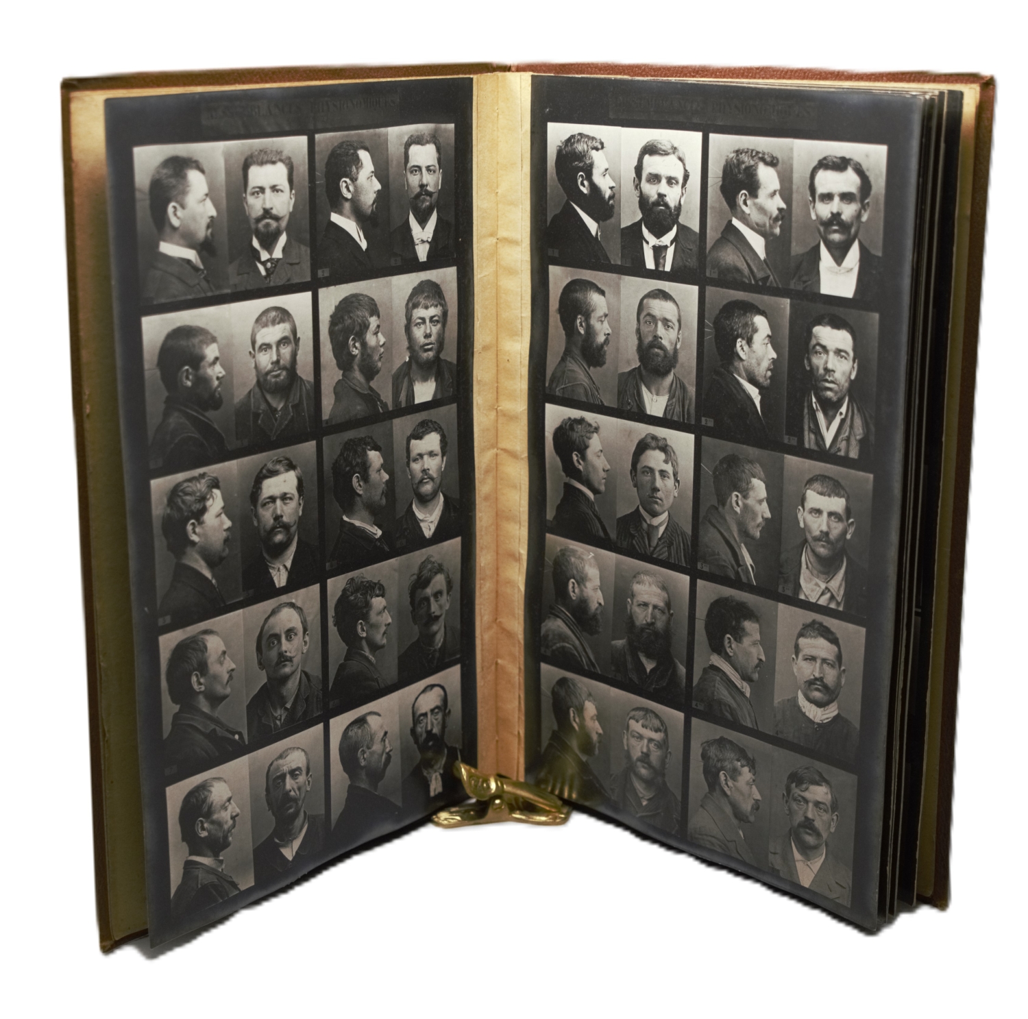 (1853-1914)Cours théorique de signalement descriptif. Exercices pratiques de reconnaissances d’identité. 21 Fotografien. 1900