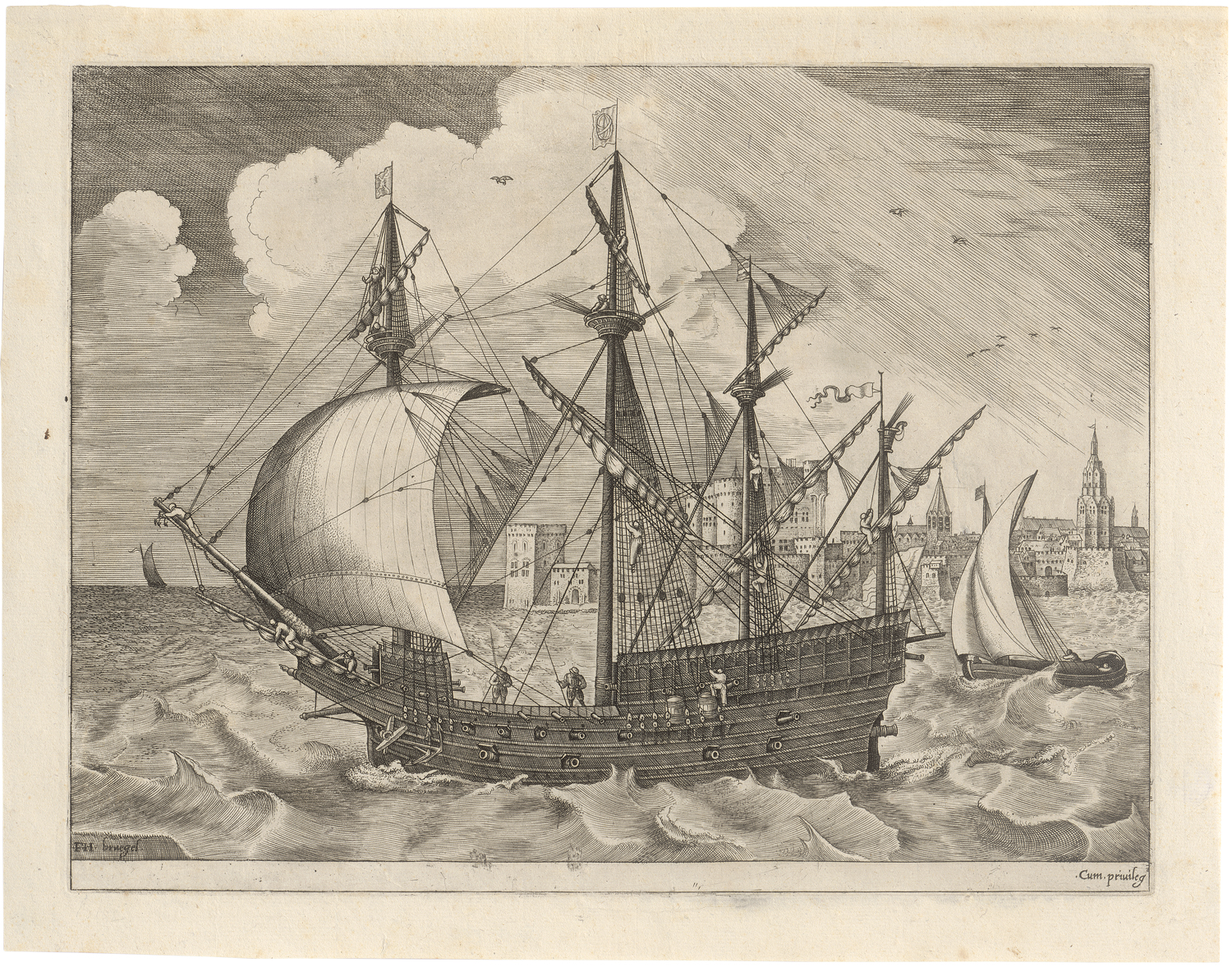 (um 1525-1569 Brüssel)Bewaffneter Viermaster sticht in See