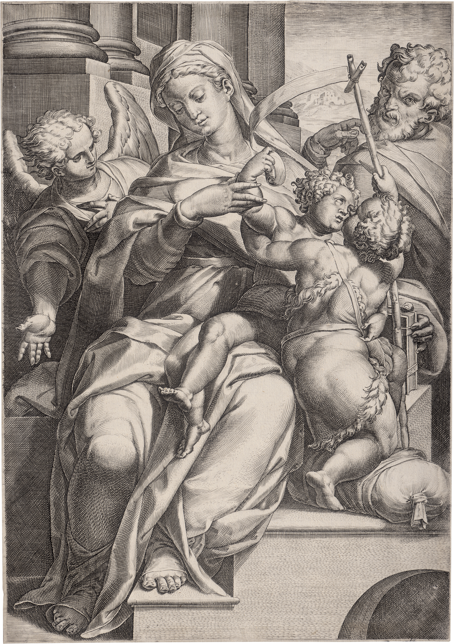 Lot 5053, Auction  126, Carracci, Agostino, Die Hl. Familie mit Johannes d. Täufer und einem Engel