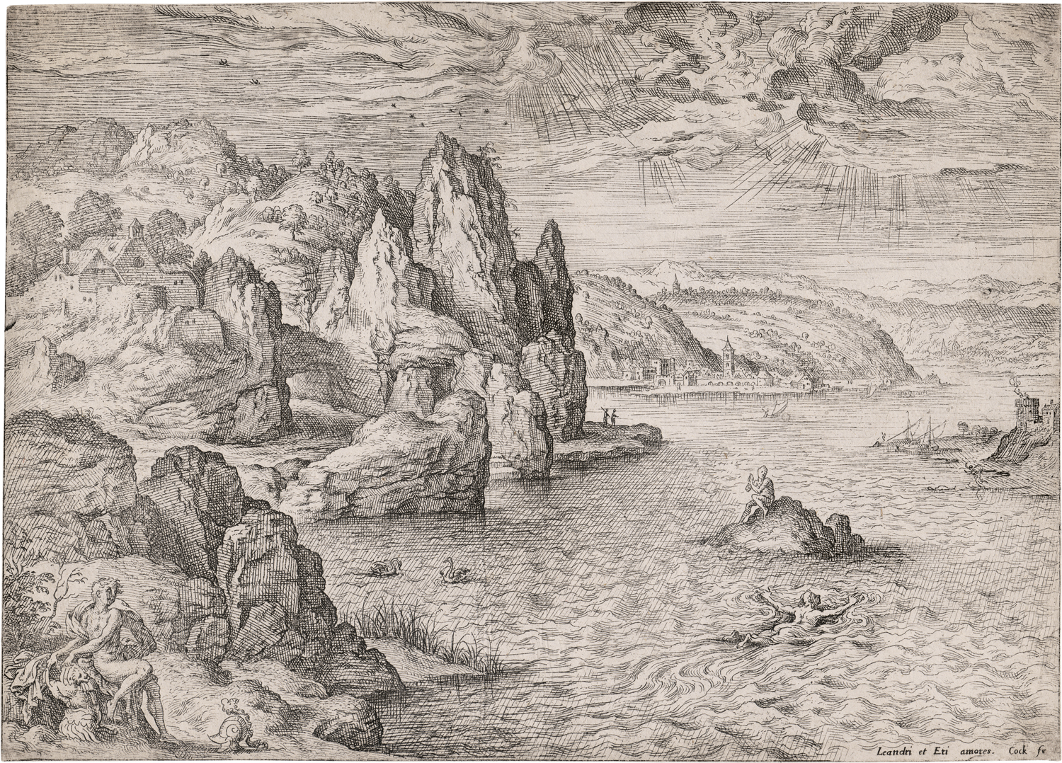 Lot 5062, Auction  126, Cock, Hieronymus, Landschaft mit Leander, der durch den Hellespont schwimmt