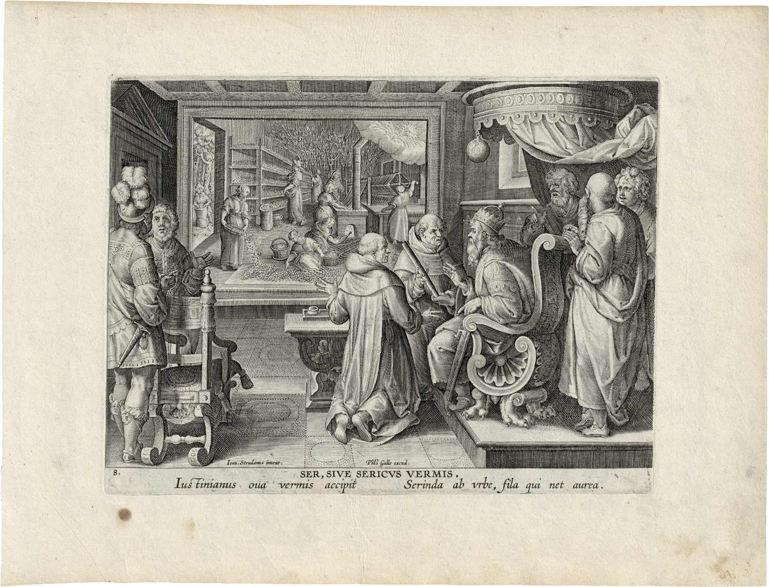 (eigentl. van der Straet, 1523 Brügge - 1605 Florenz)Ser, sive sericus vermis – Die Erfindung der Seidenproduktion