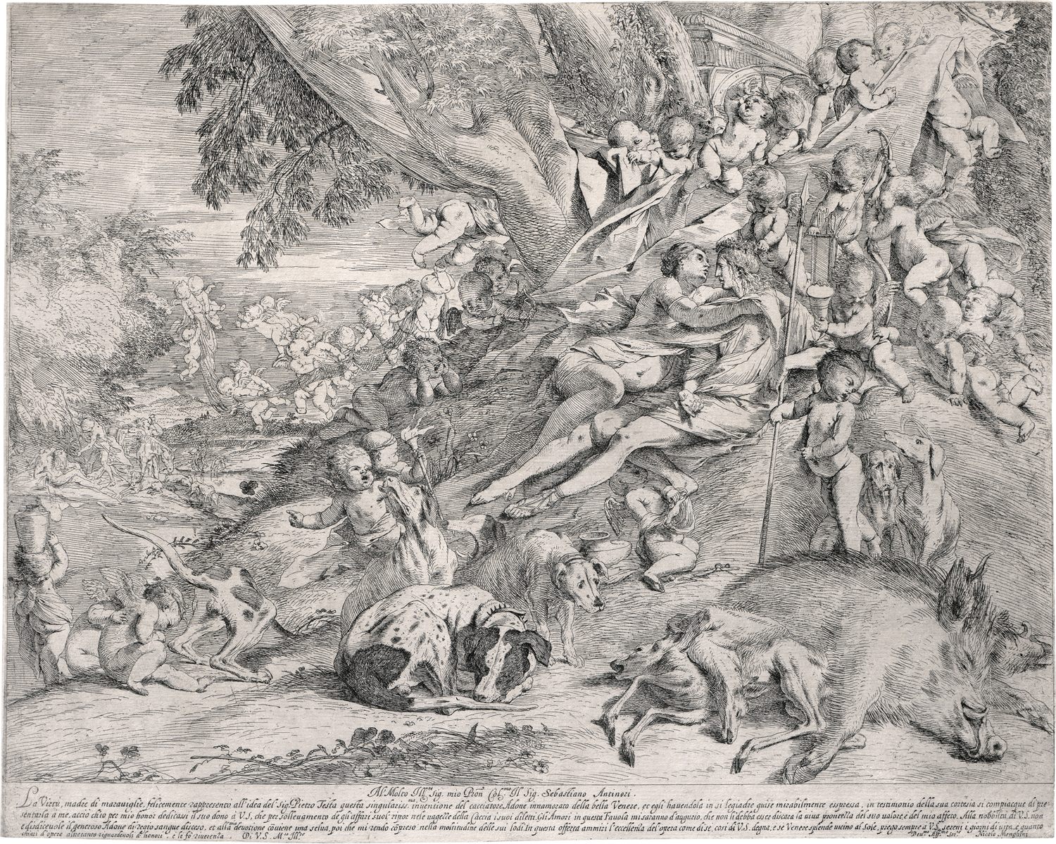 (1612 Lucca - 1650 Rom)Venus und Adonis nach der Jagd, umgeben von Putti