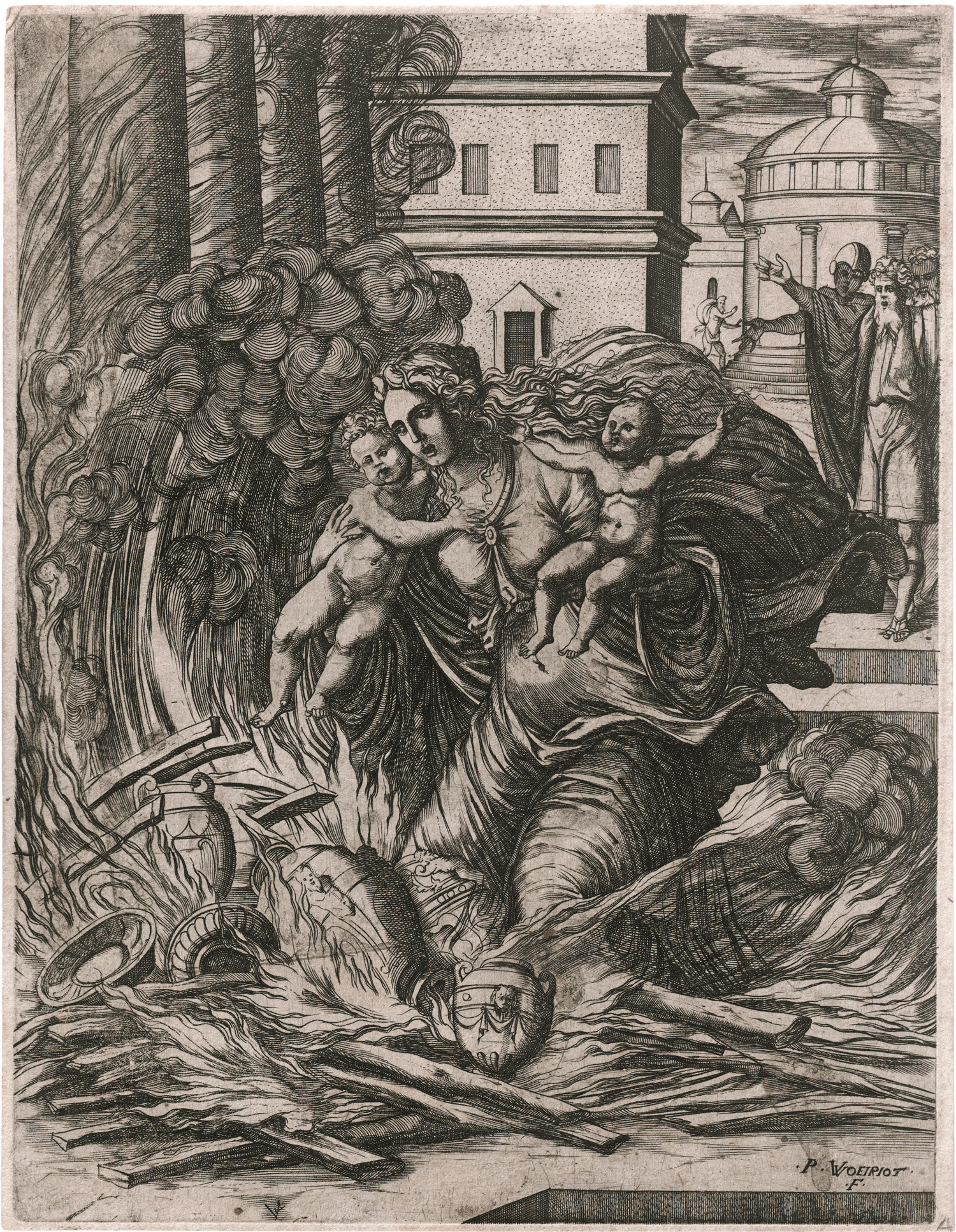 (De Bonzey, 1532 Neufchâteau - nach 1596)Hasdrubals Frau stürzt sich in den brennenden Tempel