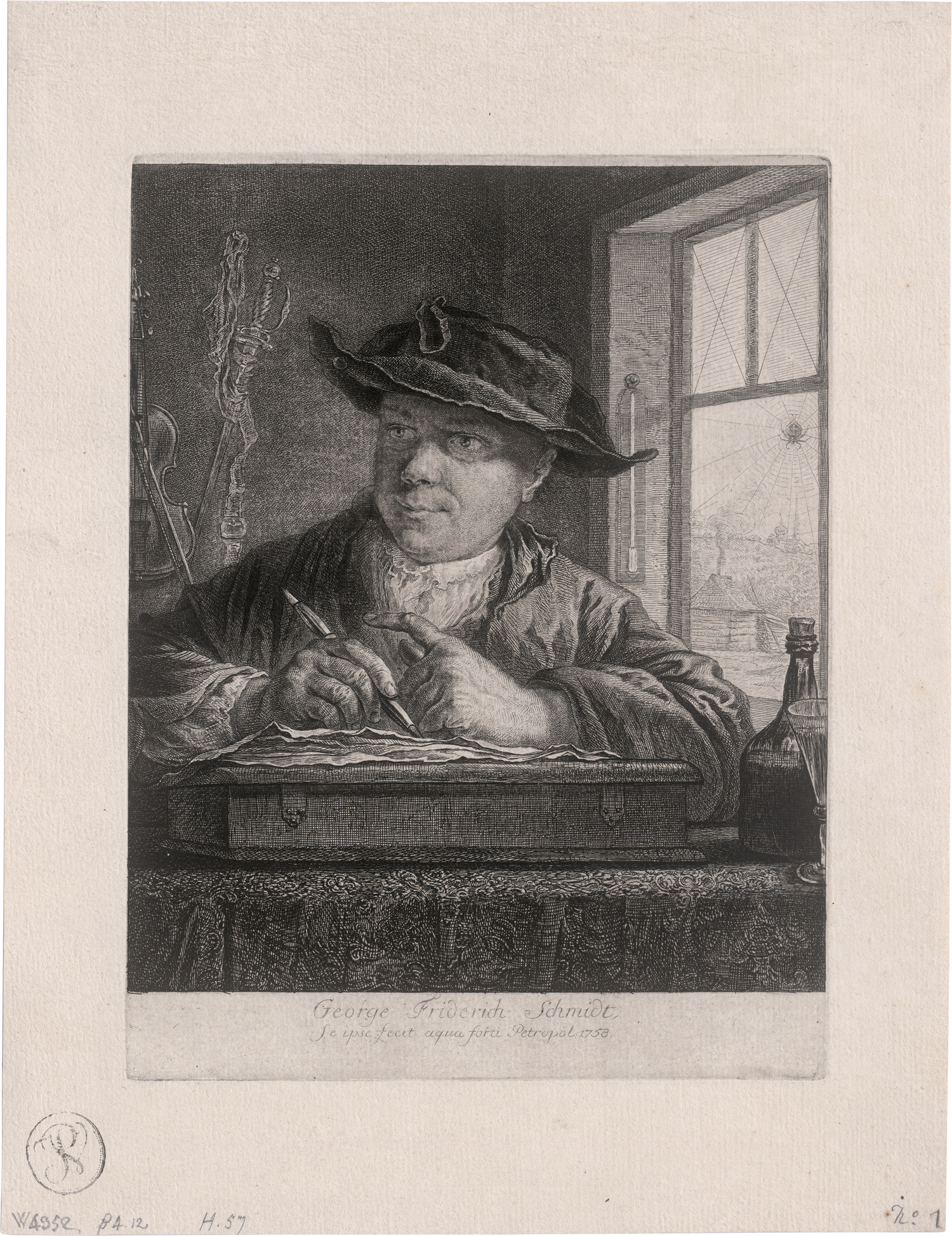 (1712 Schönerlinde b. Berlin - 1775 Berlin)Selbstporträt Georg Friedrich Schmidt (mit der Spinne)