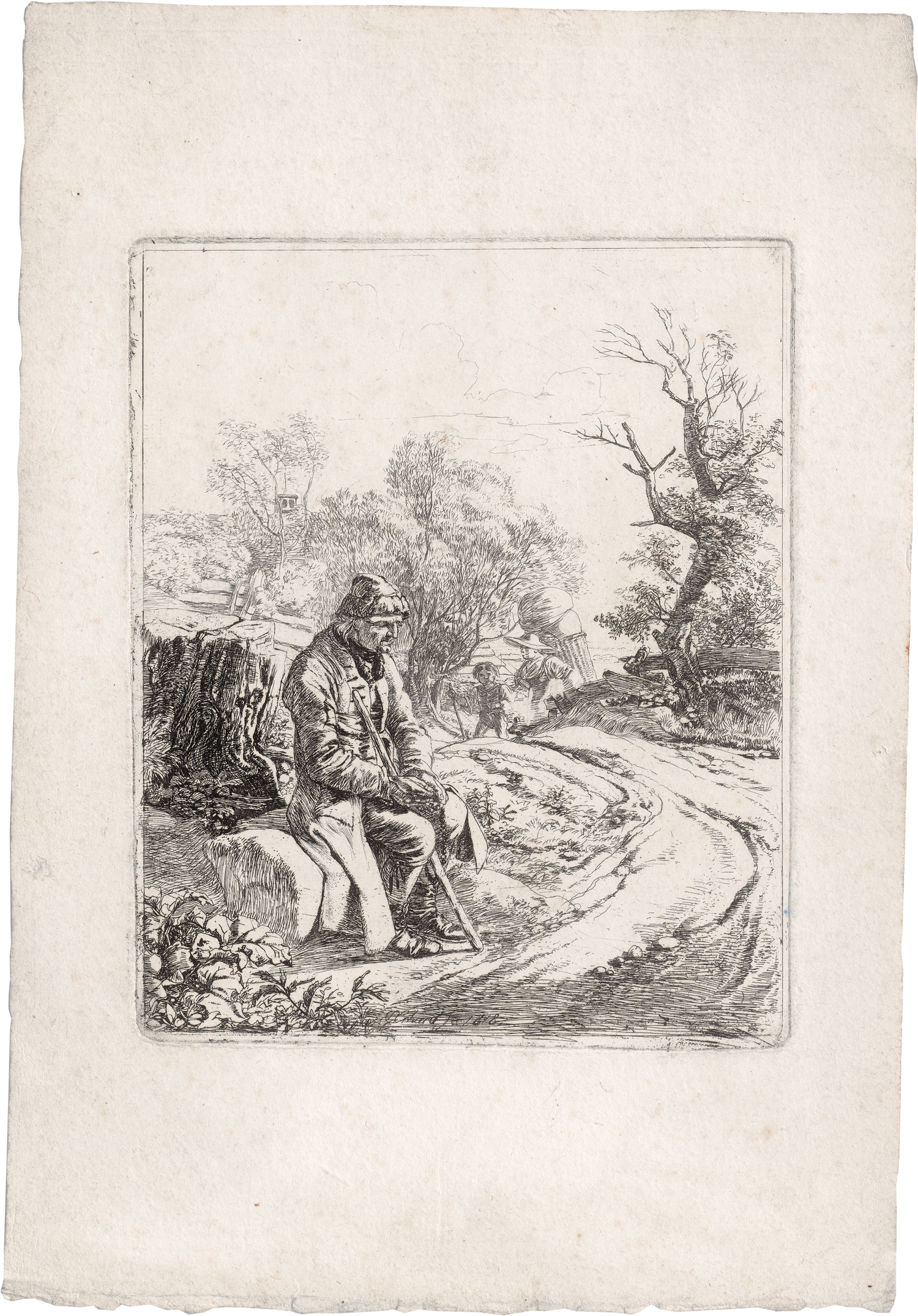 (1795 Nürnberg - 1822 Rom)Der am Weg sitzende Greis