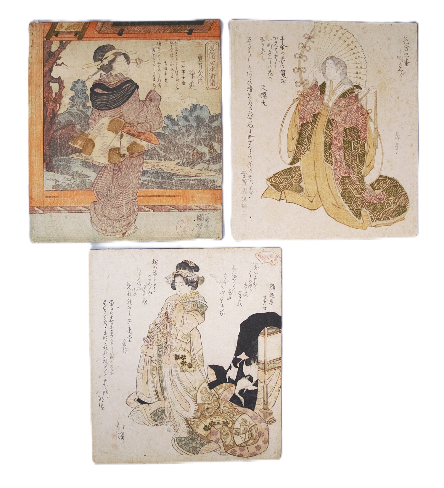 Konvolut von 3 Darstellungen von Damen im Kimono