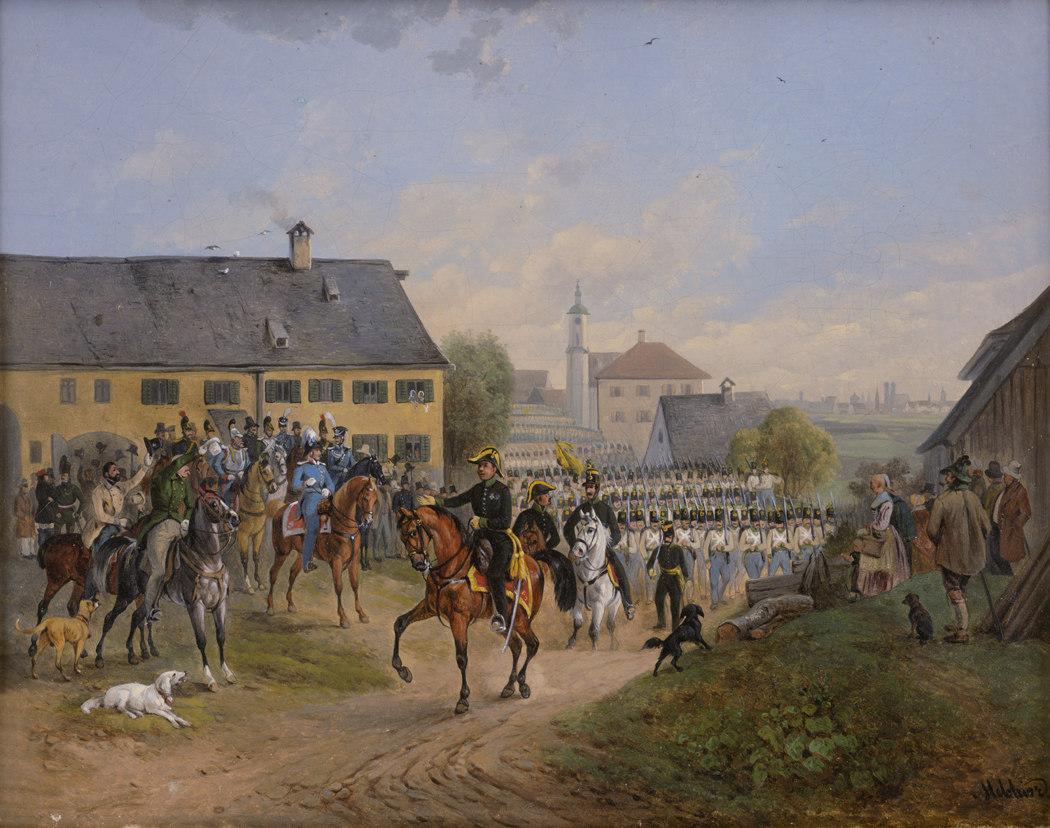 (1817 Nymphenburg - 1860 München)Der Münchener Stadtkommandant begrüßt das k.u.k. Regiment Latour in Sendling