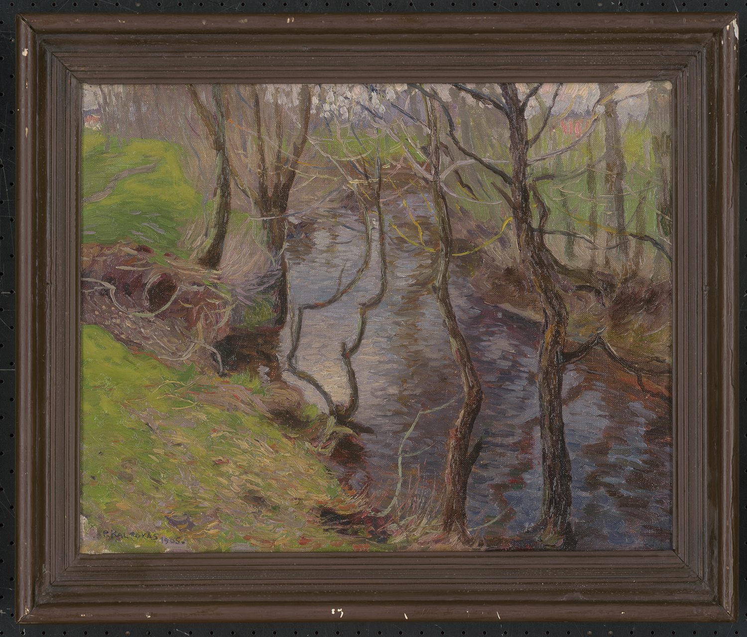 (1880 Miskine, Litauen - 1945 Kaunas)Baumbestandener Bachlauf im Vorfrühling
