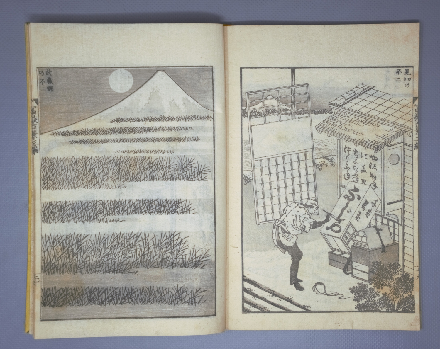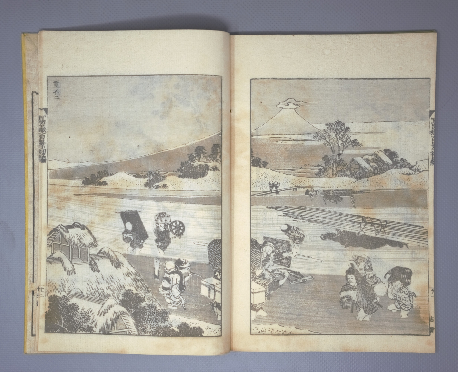 (1760-1849)Fugaku hyakkei (japonice: 100 Ansichten des Berges Fuji). 3 Blockbücher