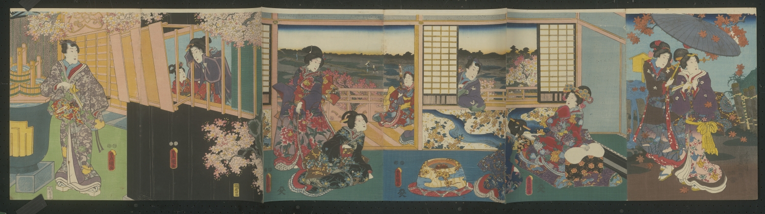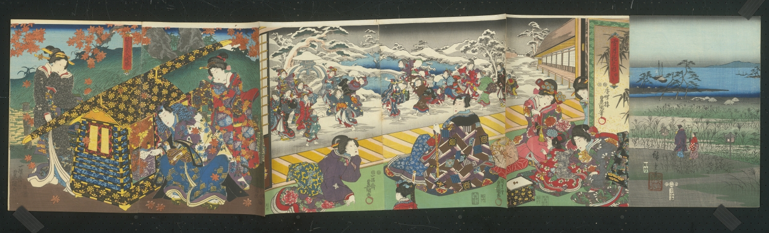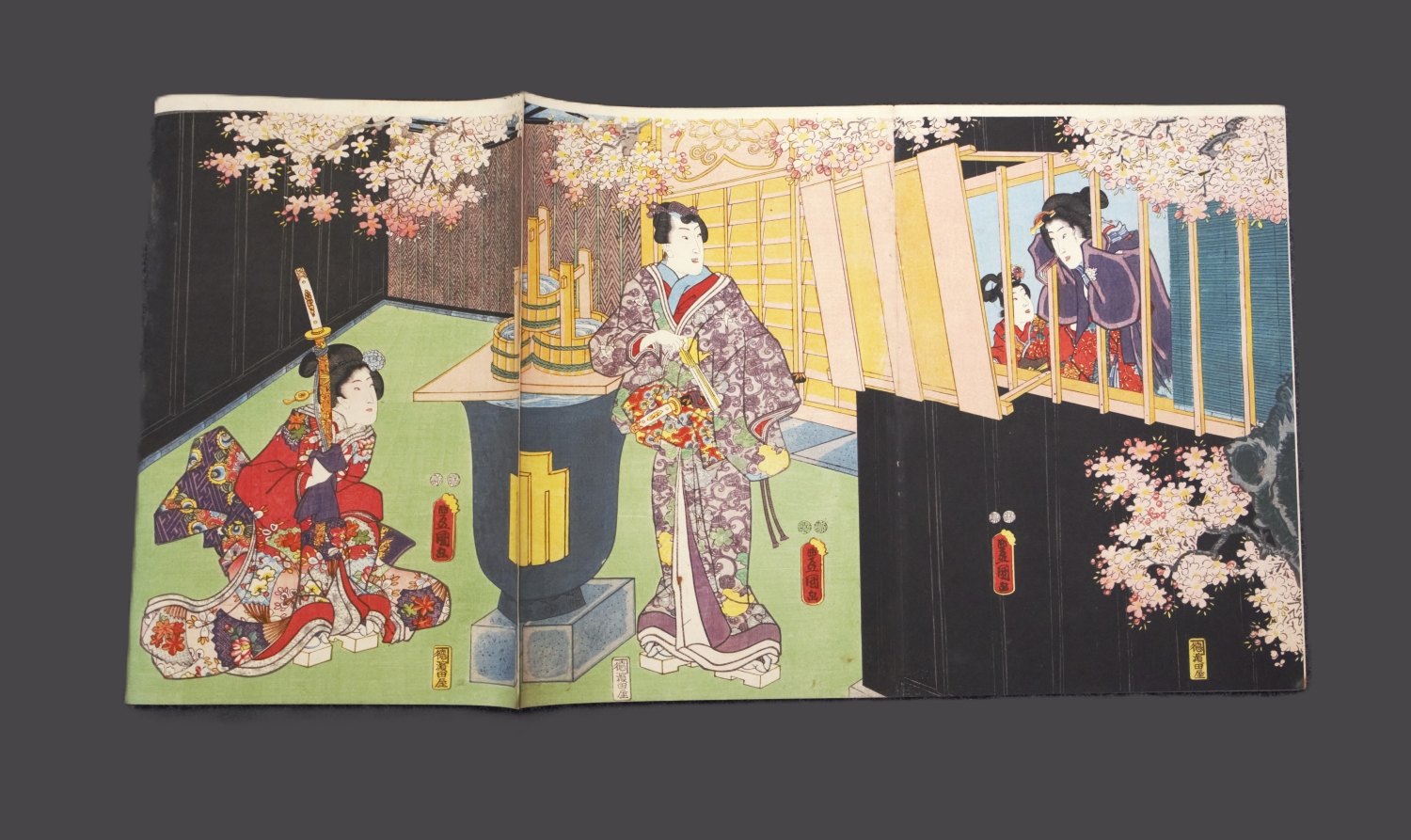 Album mit 37 Ukiyo-e Farbholzschnitten in 23 Trypticha bzw. Dypticha