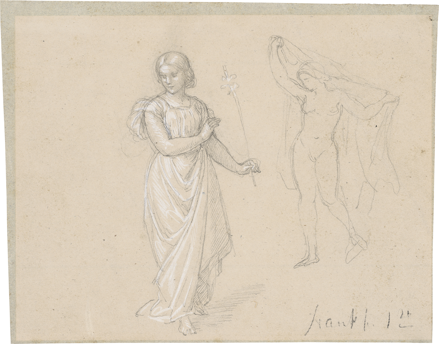 (1810 Wien - 1886 Frankfurt a. M.)Mädchen mit Lilie und weiblicher Akt mit Tuch