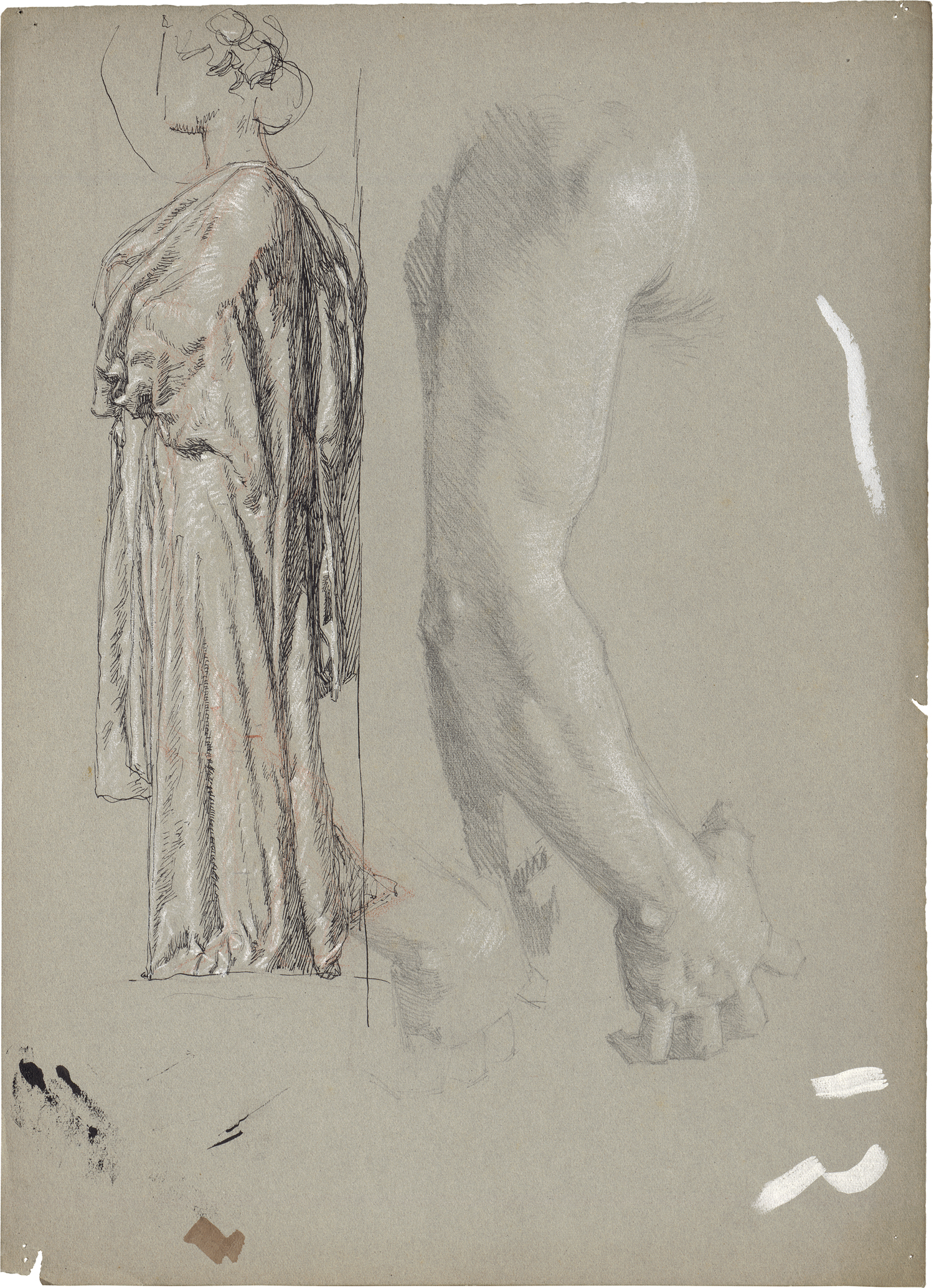 (1870-1946, Wien)Studienblatt mit weiblicher Figur im antiken Gewand und Armstudie